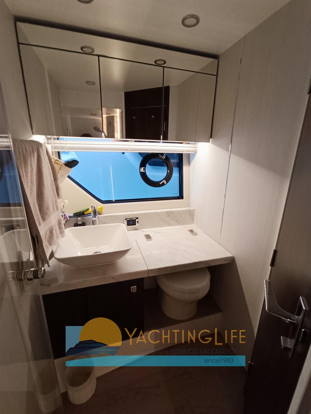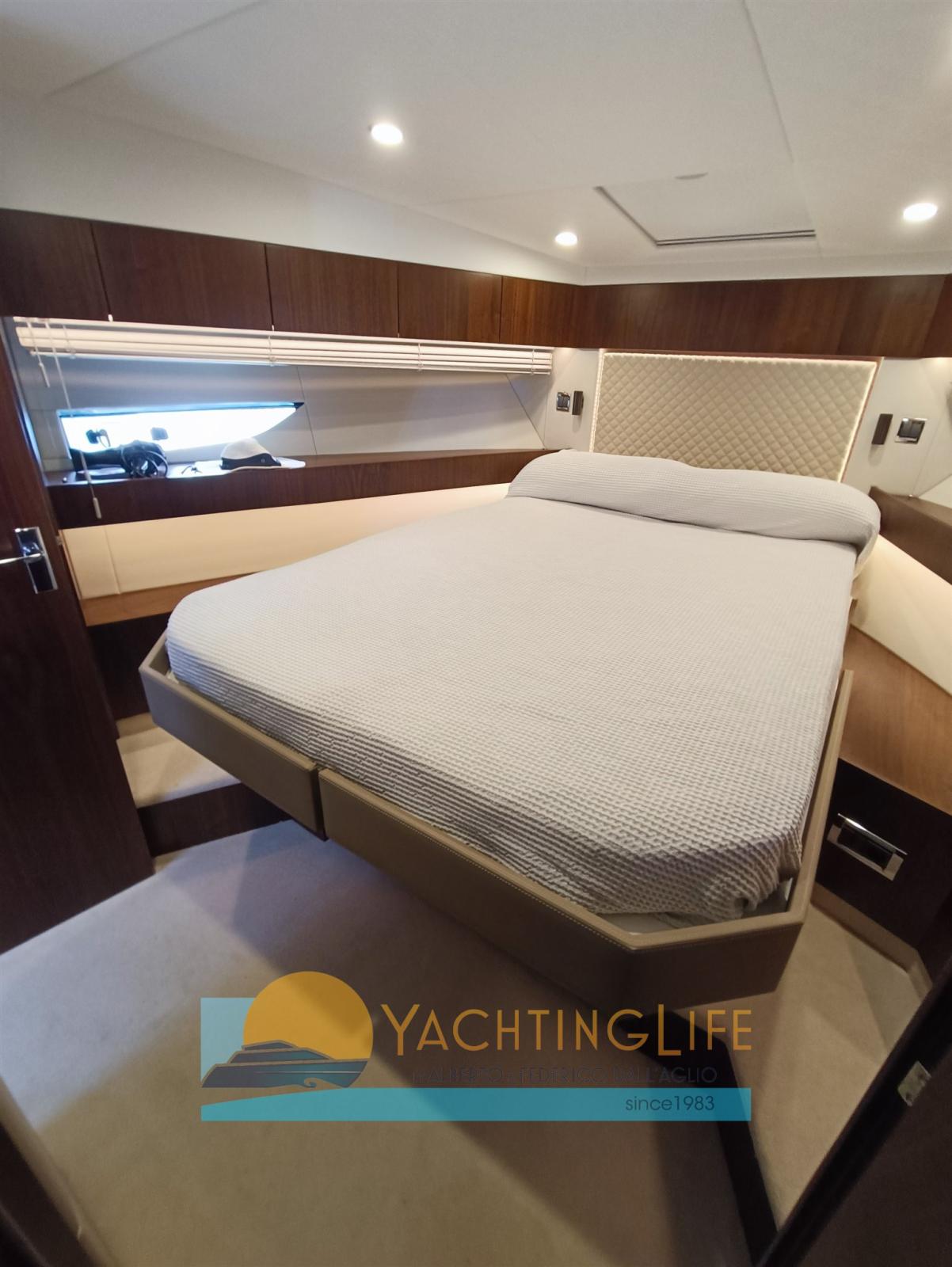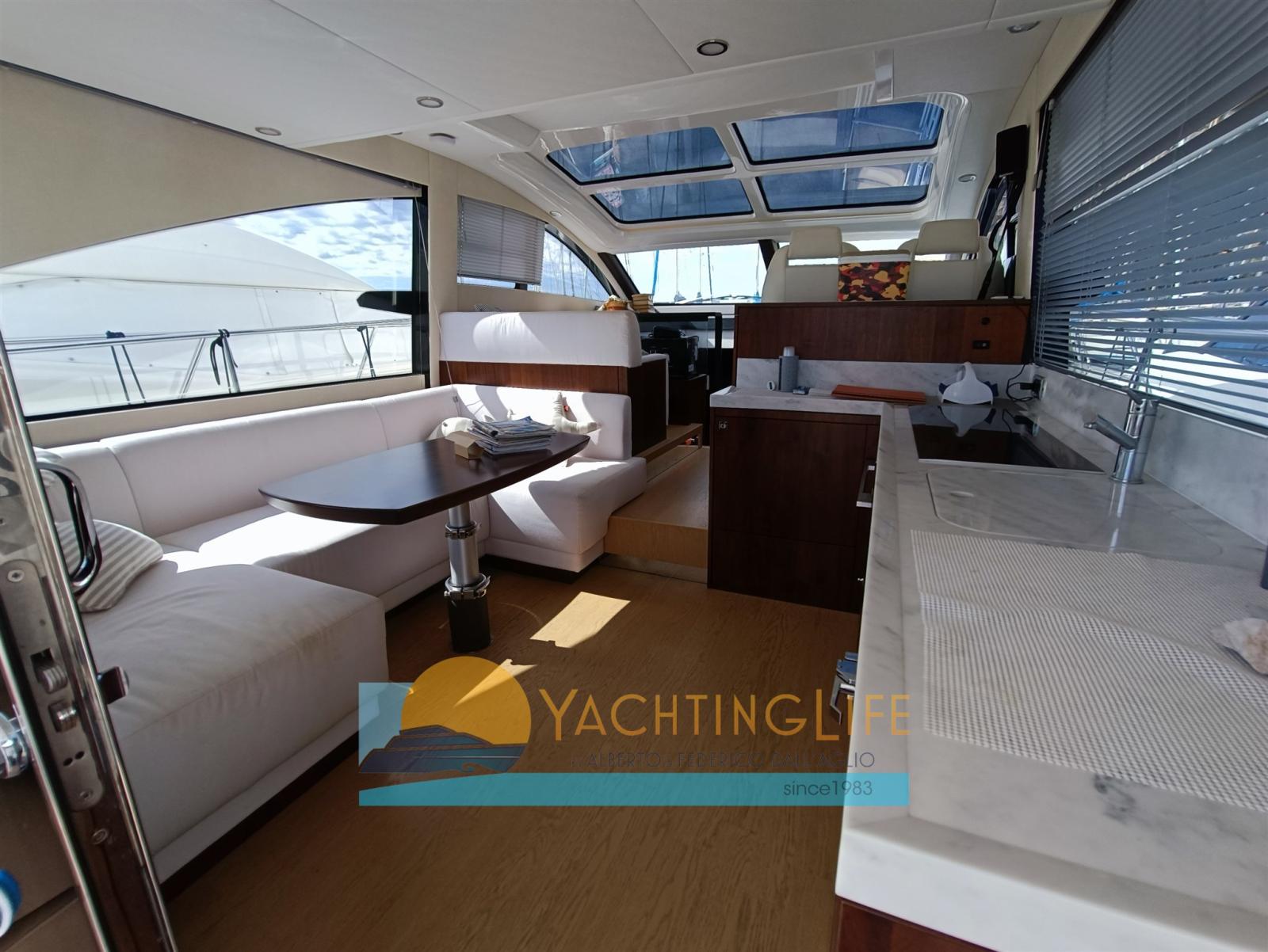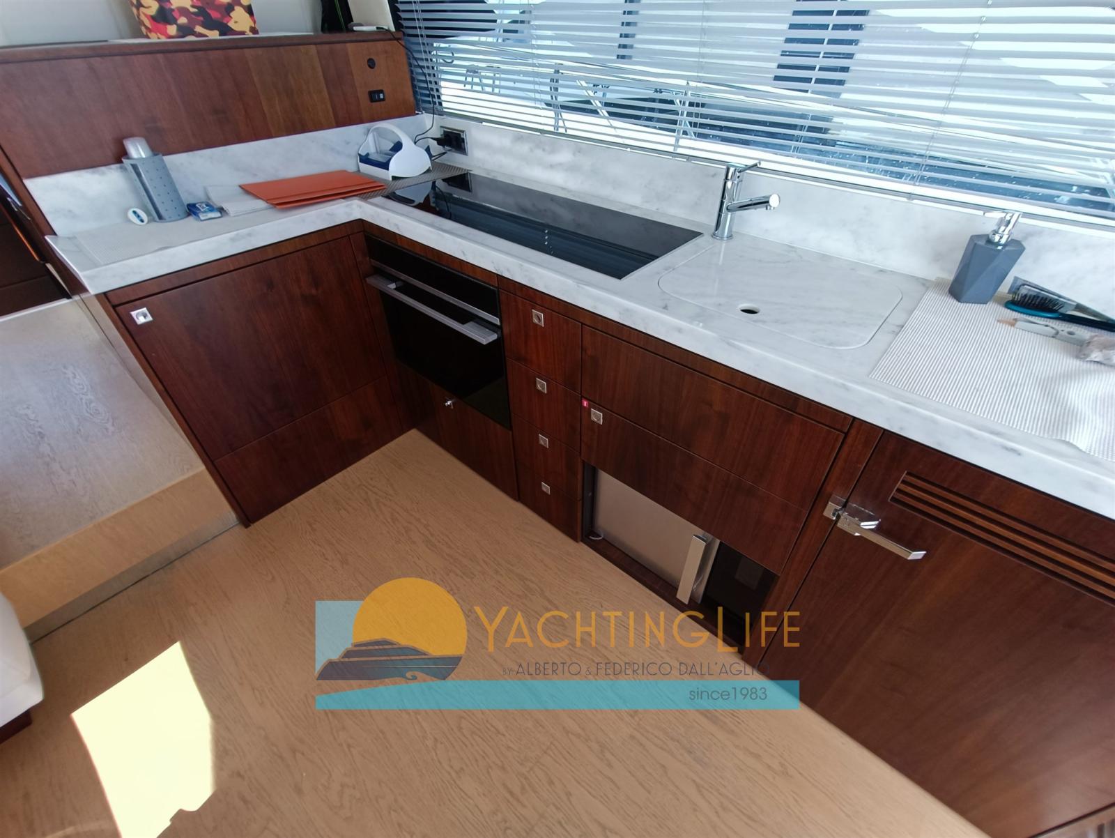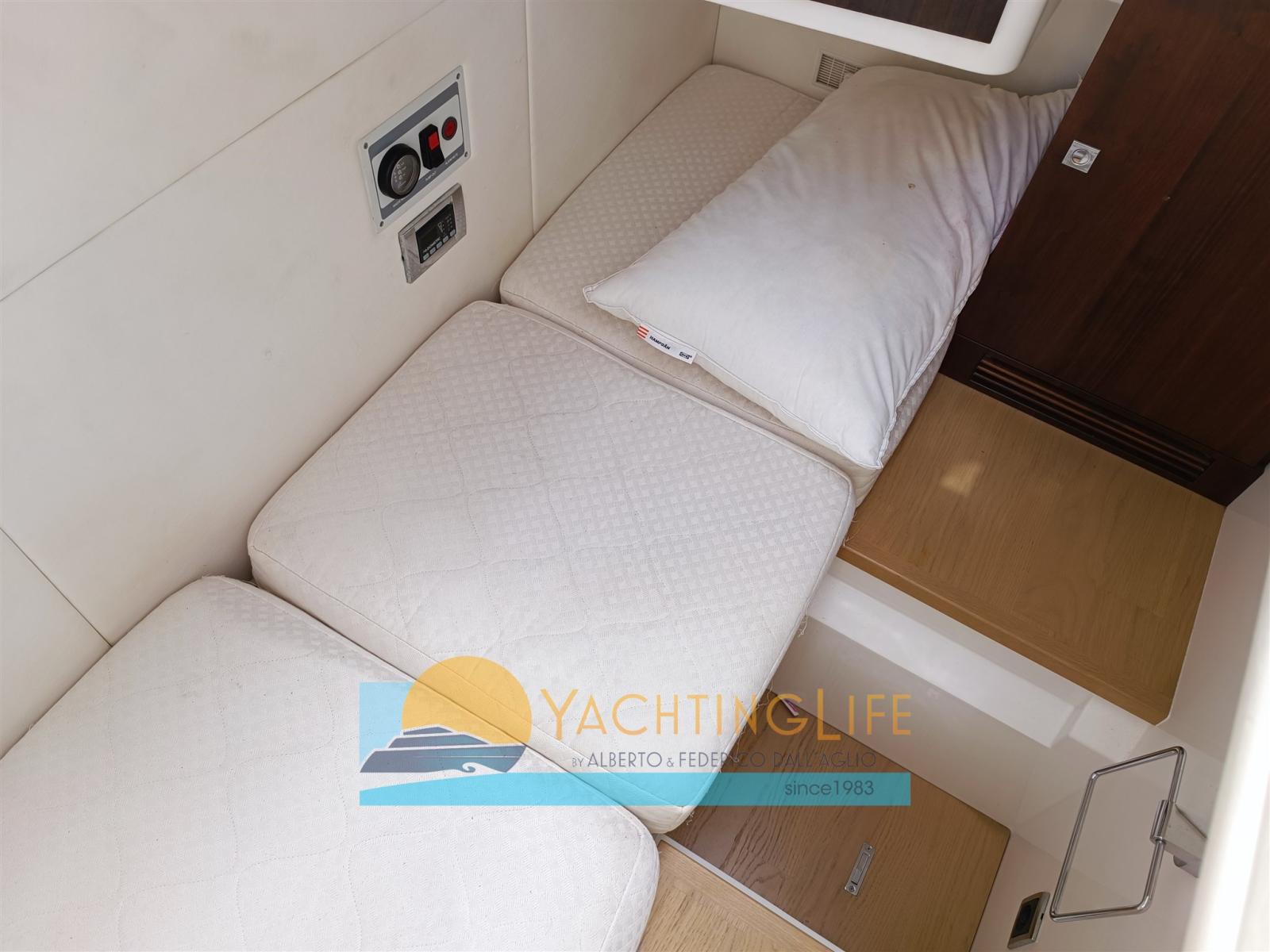 Alarme moteur, Alarme de pompe de cale, Eau sous pression, Douche de cockpit, Flaps électriques, Hard top, Indicateurs de flaps, Éclairage de courtoisie, Passerelle (idraulica), Plateforme arrière (idraulica), Pompe de cale automatique, Porte latérale, Cockpit en teck, Prise de quai, Guindeau électrique, Echelle de bain, Selles pour Annexe, table de cockpit.