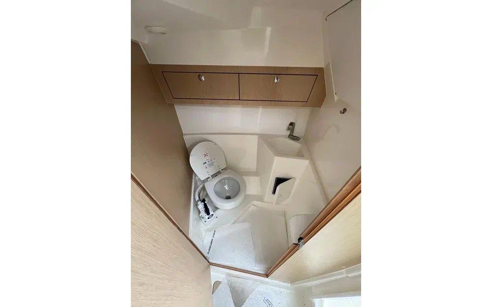 Cockpit auto-vidant, WC séparé, Réservoir de carburant 230 L , Panneau ouvrant cabine , Essuie-glace droit, Table cabine, Batterie, Siège pilote, Feu de navigation, Système de ventilation, Feu de pont Evier et robinet dans la cabine, Cuisinière portable, Mât de pavillon, Coussin de la cabine, Pompe de cale automatique et manuelle, Direction hydraulique.