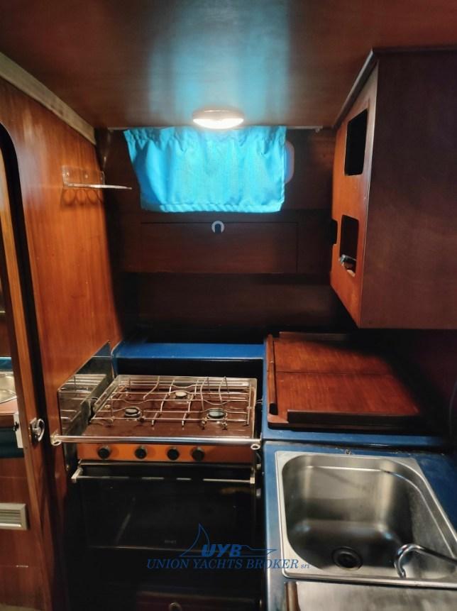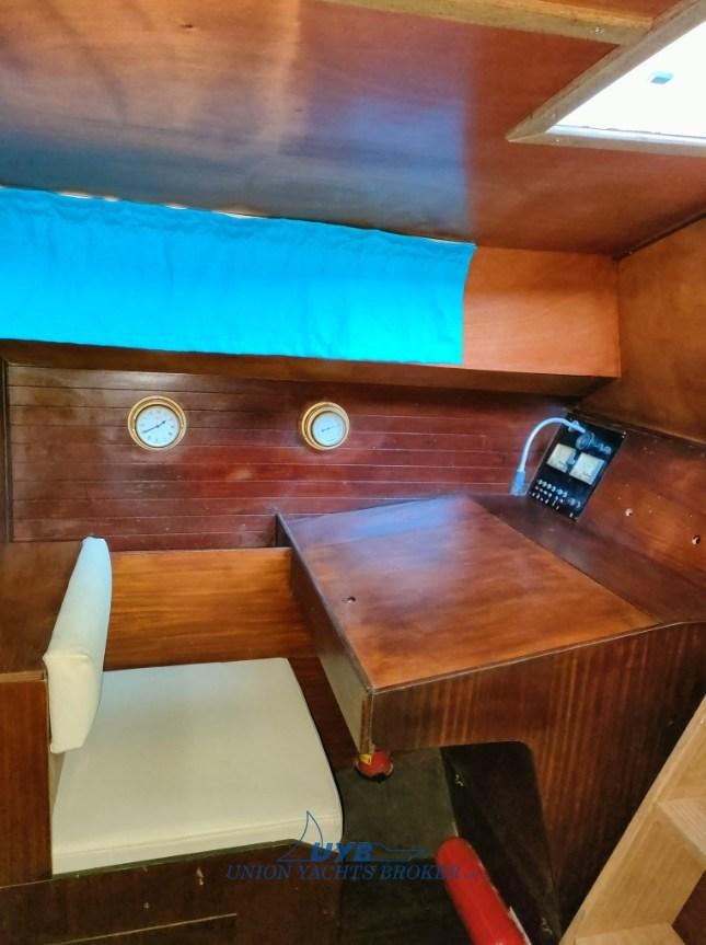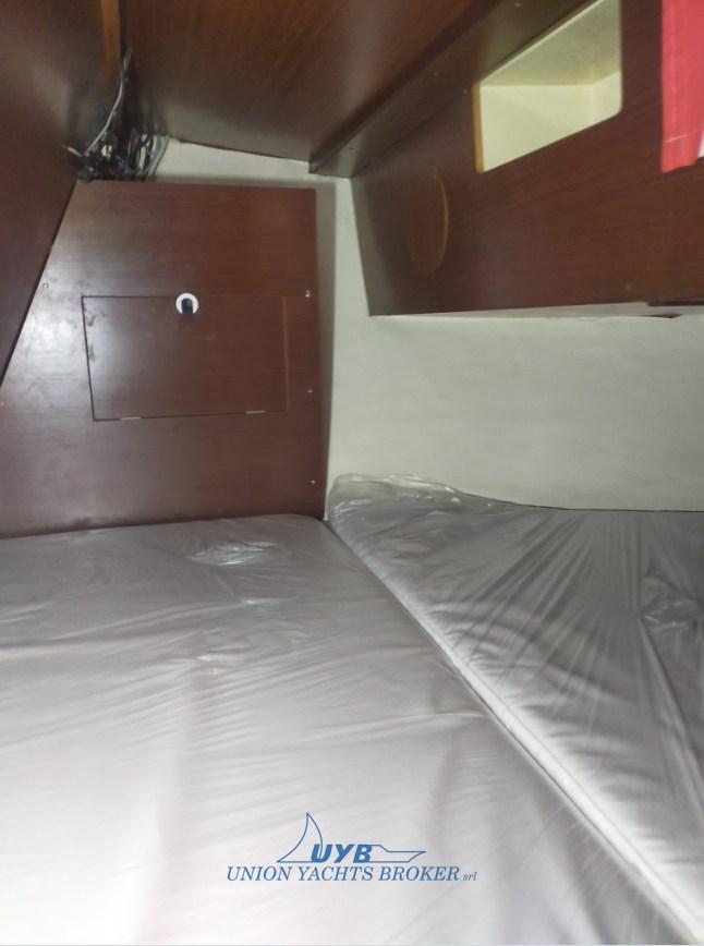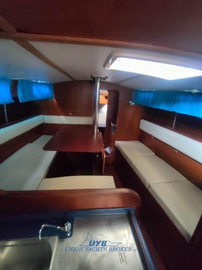Intérieurs avec deux cabines, dînette convertible, cuisine en face de la table à cartes et des toilettes vers la proue. Remontée au près particulièrement rapide.