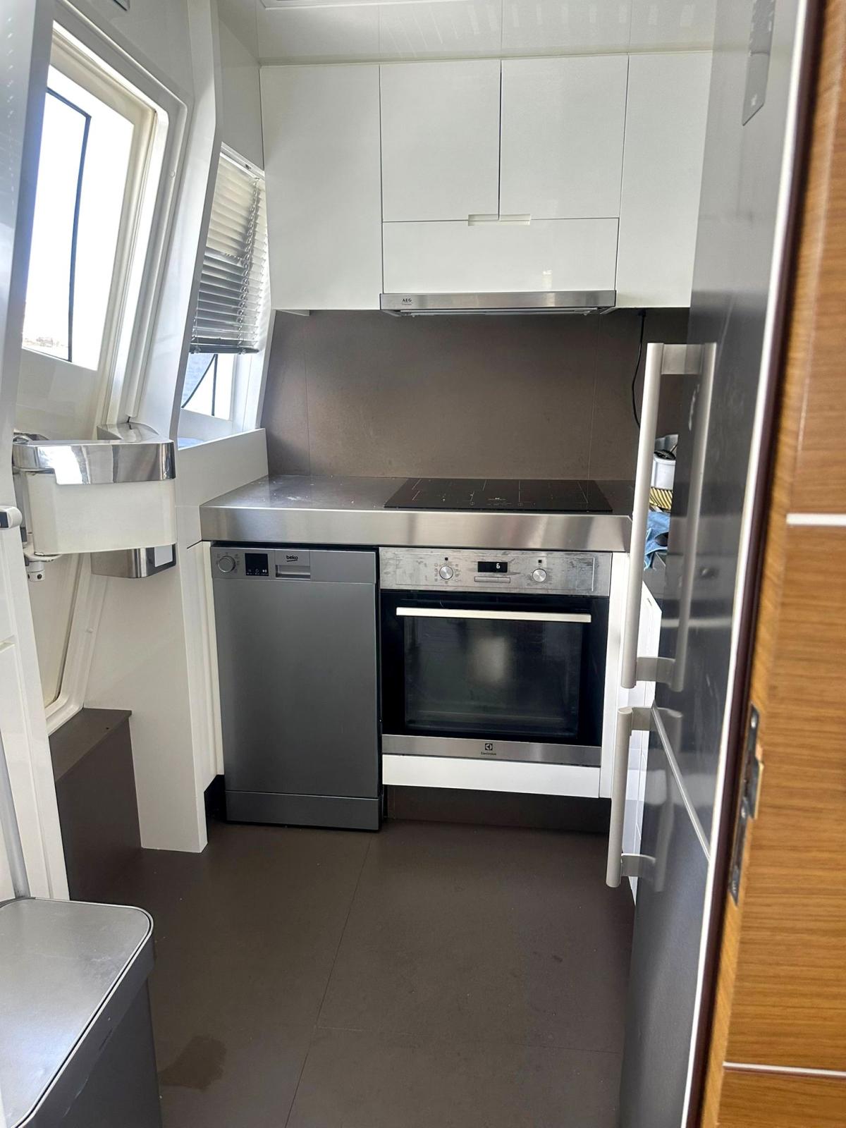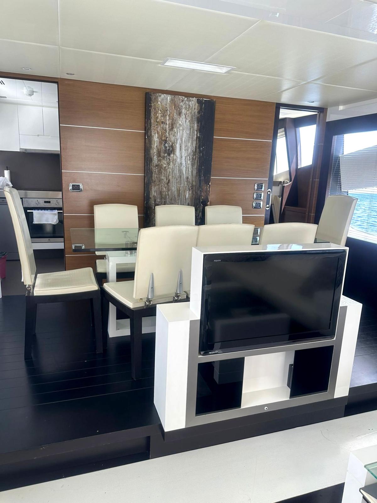 Le pont principal propose un vaste salon lumineux, un espace repas, une cuisine ouverte, un cabinet de jour et un poste de pilotage offrant une vue panoramique.