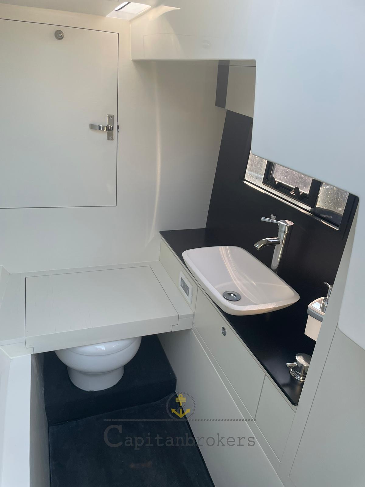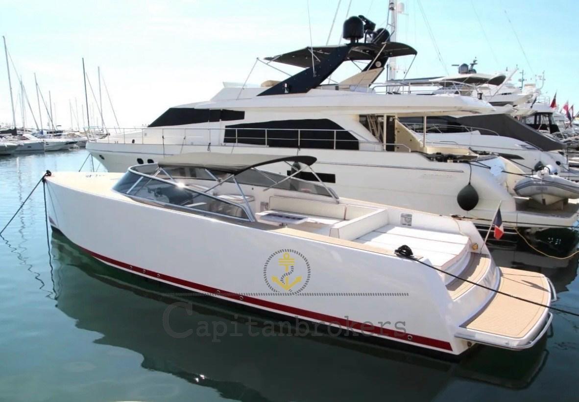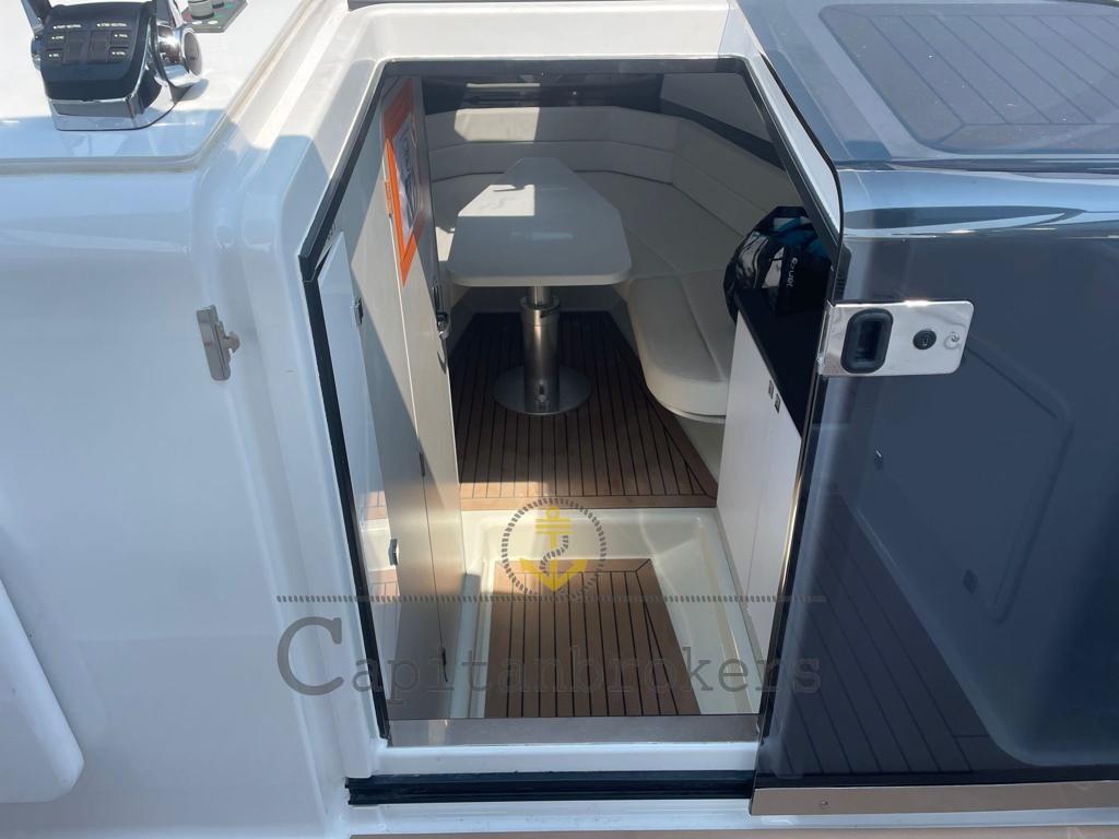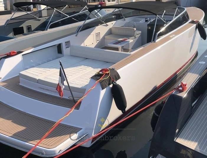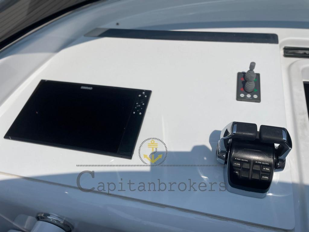 Alarme moteur, Alarme de pompe de cale, Eau sous pression (nuova), Spots sous-marins (nuove led), Plateforme arrière (flexiteek), Pompe de cale automatique, Pompe de cale manuelle, Cockpit en teck (flexiteek), Prise de quai, Connexion eau sous pression à quai, Guindeau électrique, Stabilisateurs (humpfree), table de cockpit, Corne.