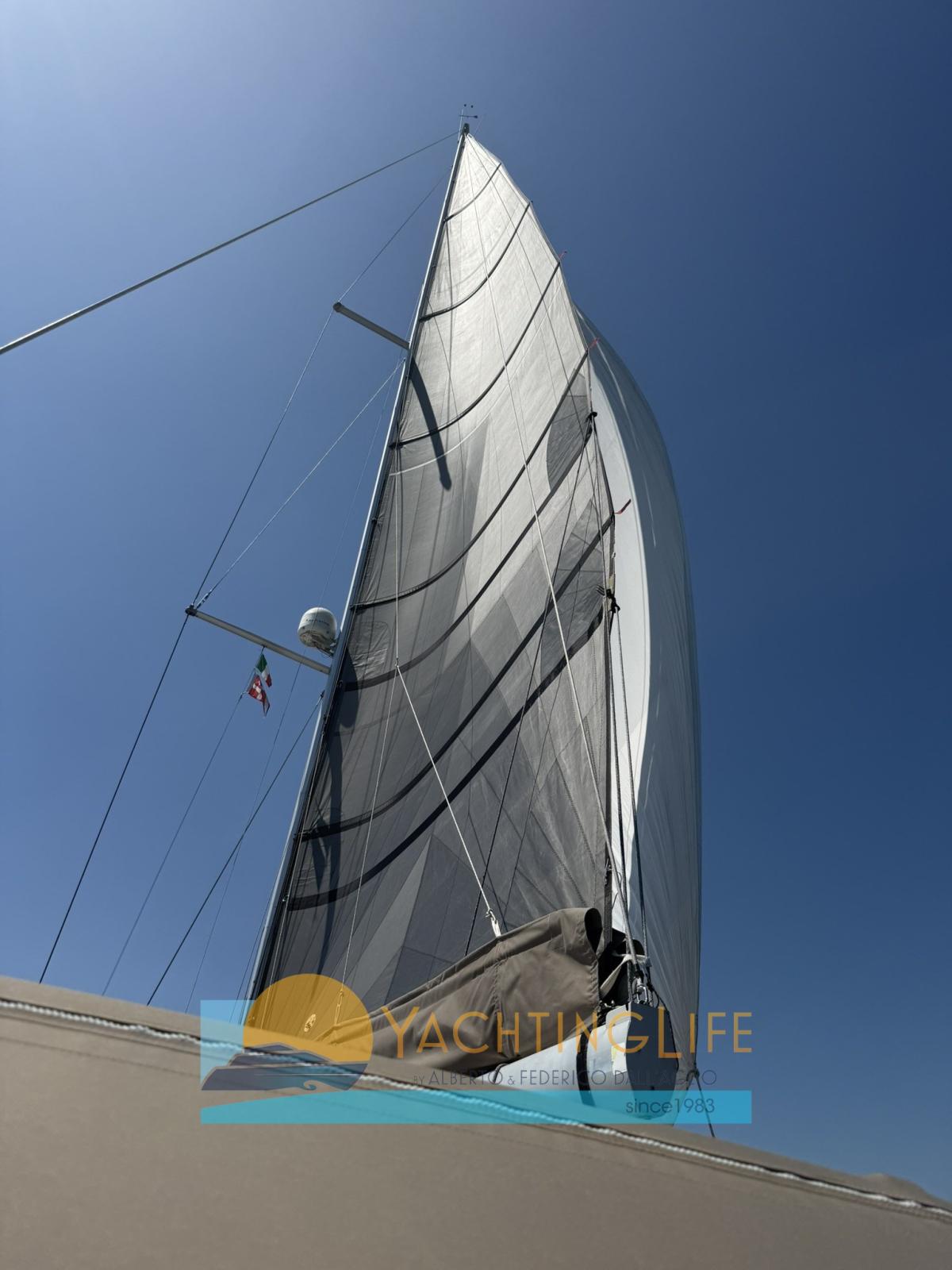 Alarme moteur, Alternateur (120ah maggiorato nuovo), Ancre (Nuova e catena maggiorata), Eau sous pression, Douche de cockpit, Bossoir pour HB, Éclairage de courtoisie, Moteur hors-bord pour annexe (Suzuki 6hp 4t), Passerelle (In carbonio), Plateforme arrière (Ad apertura elettrica), Porte latérale, Cockpit en teck, Prise de quai, Répétiteur électronique, Guindeau électrique, Gréement monotoron (Sotituito), Echelle de bain, Chaise support HB, table de cockpit, Annexe (Nuovo), Corne.