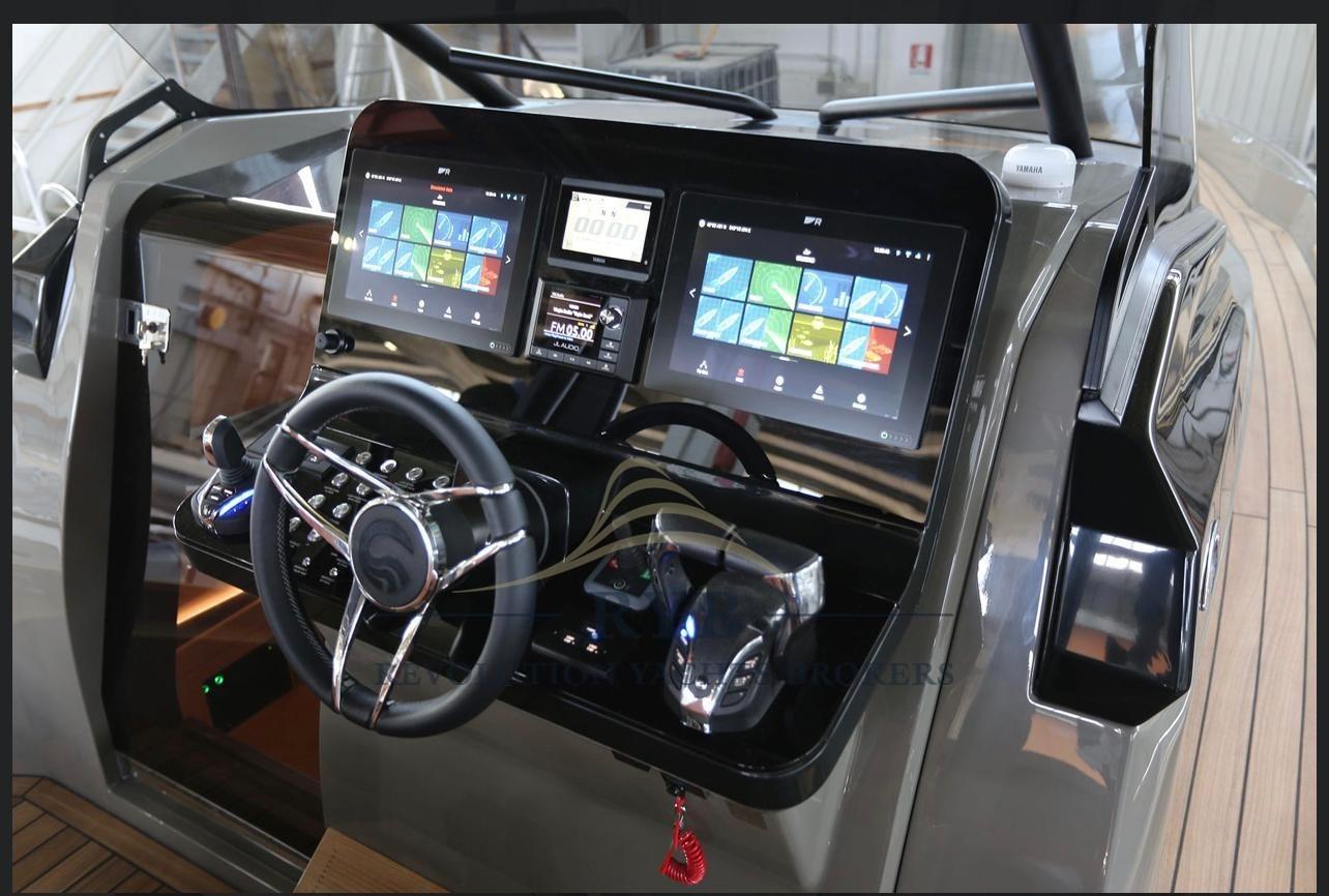 Ordinateur fixe de bord, Sondeur pêche (TRASDUTTORE PASSANTE 3D), Pilote automatique (YAMAHA CON ANCORA VIRTUALE), 2 Plotter GPS (AXIOM 12 RAYMARINE), Radio VHF (RAYMARINE), Système de positionnement dynamique.