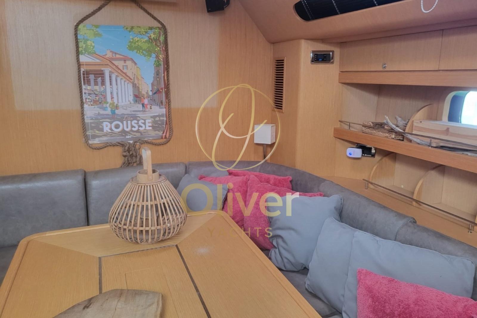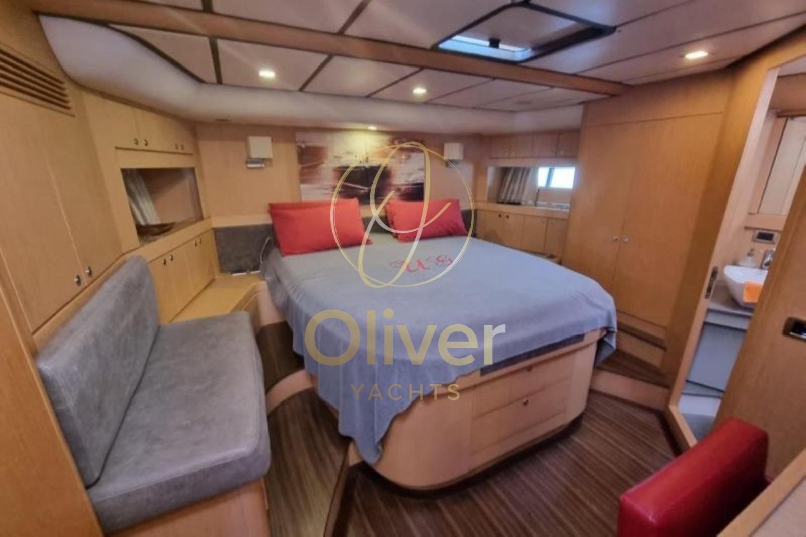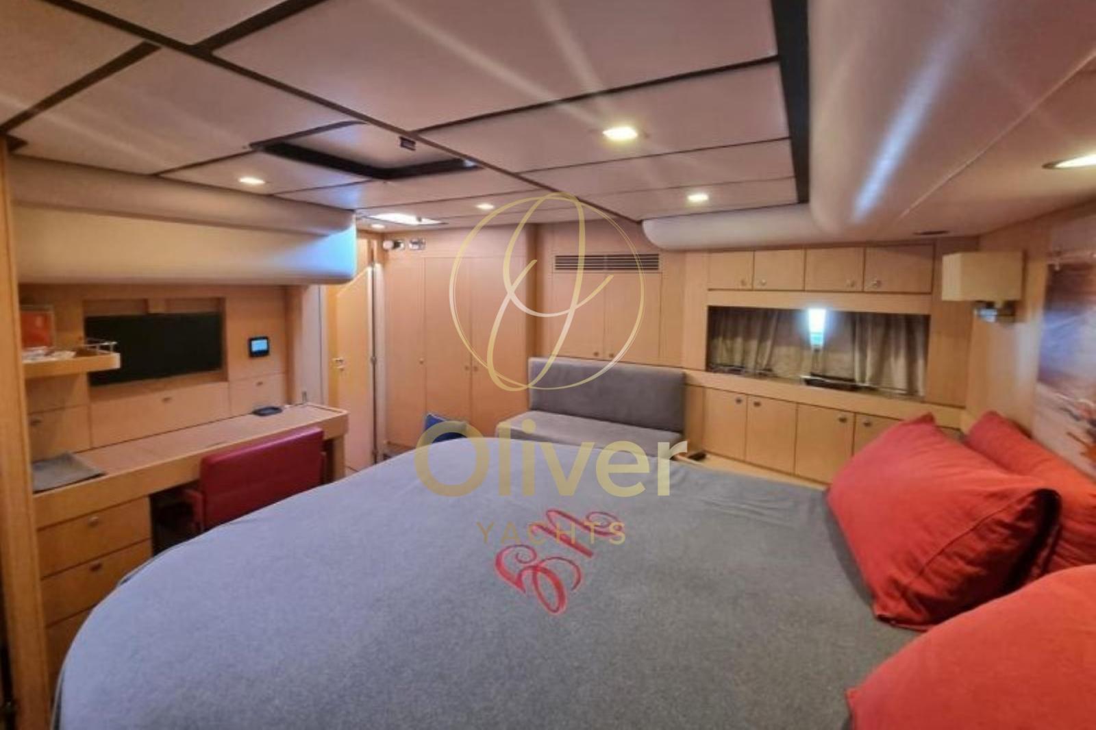 L’intérieur du Franchini 63 S est un véritable mélange d’élégance et de fonctionnalité. Fabriqués avec des matériaux de haute qualité, tels que le teck massif et le composite marin, ils offrent un environnement raffiné et accueillant. Avec quatre cabines (dont une cabine propriétaire) et deux salles de bains principales plus une pour l’équipage, le bateau est conçu pour accueillir jusqu’à huit personnes dans un confort total. La cabine du propriétaire est spacieuse et bien aménagée, avec un grand espace de rangement et une vue imprenable depuis son hublot. Le coin salon central est idéal pour se détendre, grâce à un grand coin repas bien éclairé. La cuisine entièrement équipée avec cuisinière à induction, four électrique et réfrigérateur est parfaite pour préparer des repas pendant les croisières. Chaque détail, de la qualité des tissus à l’aménagement des espaces, est pensé pour optimiser le confort à bord. De plus, l’utilisation de technologies modernes telles que le système de climatisation et le dessalinisateur à bord assure une habitabilité optimale, même lors de longs voyages. L’environnement intérieur est élégant mais en même temps pratique, rendant la vie à bord confortable et fonctionnelle.