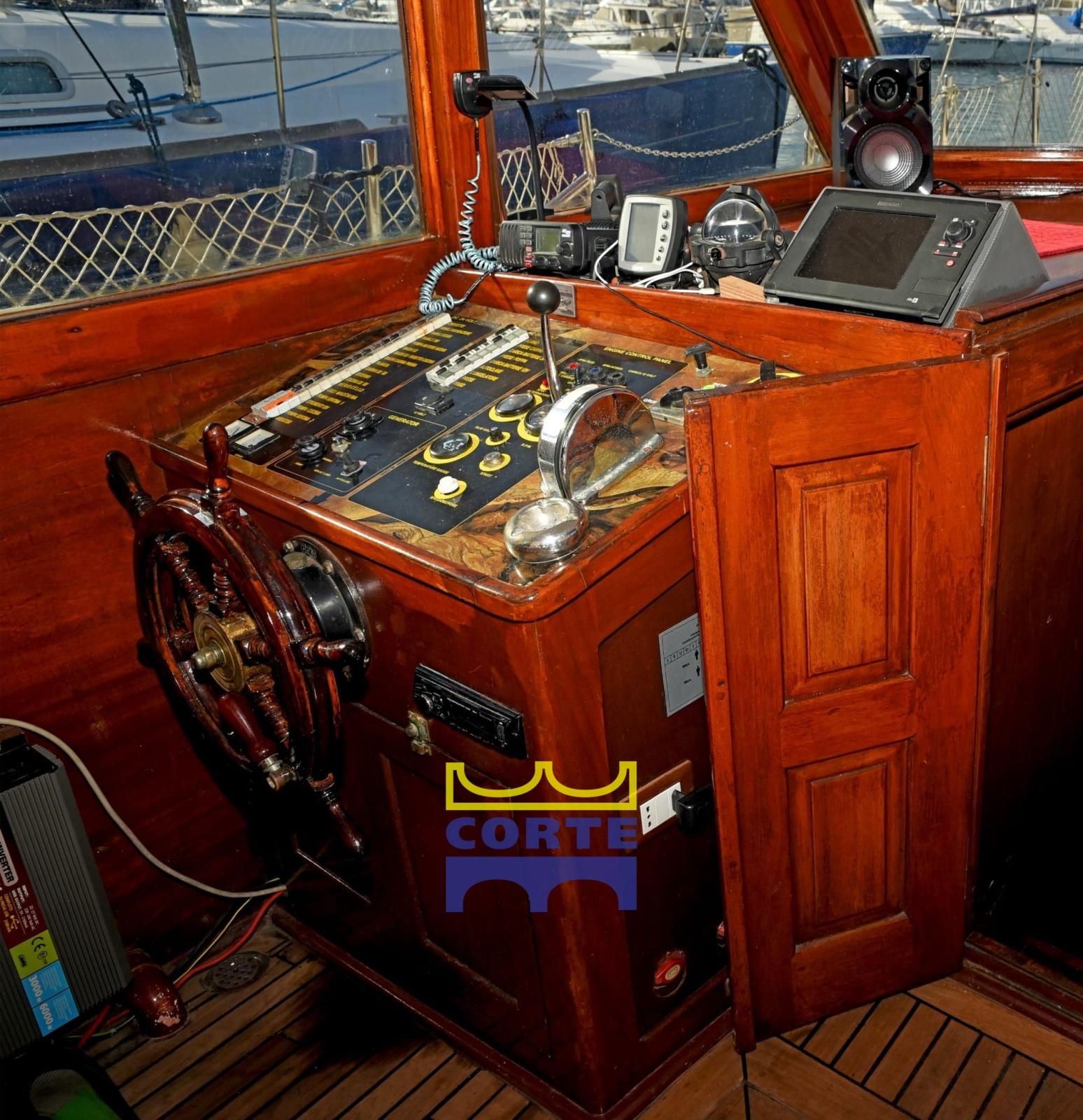 Alternateur, Eau sous pression, Passavant en teck, Douche de cockpit, Phare de poursuite, Extincteur(s) fixe(s), Passerelle, Pompe de cale automatique, Pompe de cale manuelle, Pont en teck, Porte latérale, Cockpit en teck, Prise de quai, Guindeau électrique, Echelle de bain, table de cockpit (ampio), Annexe, Corne, Winch électrique avant.
