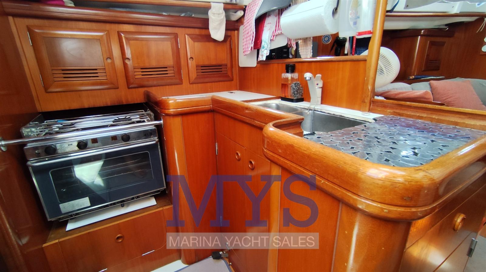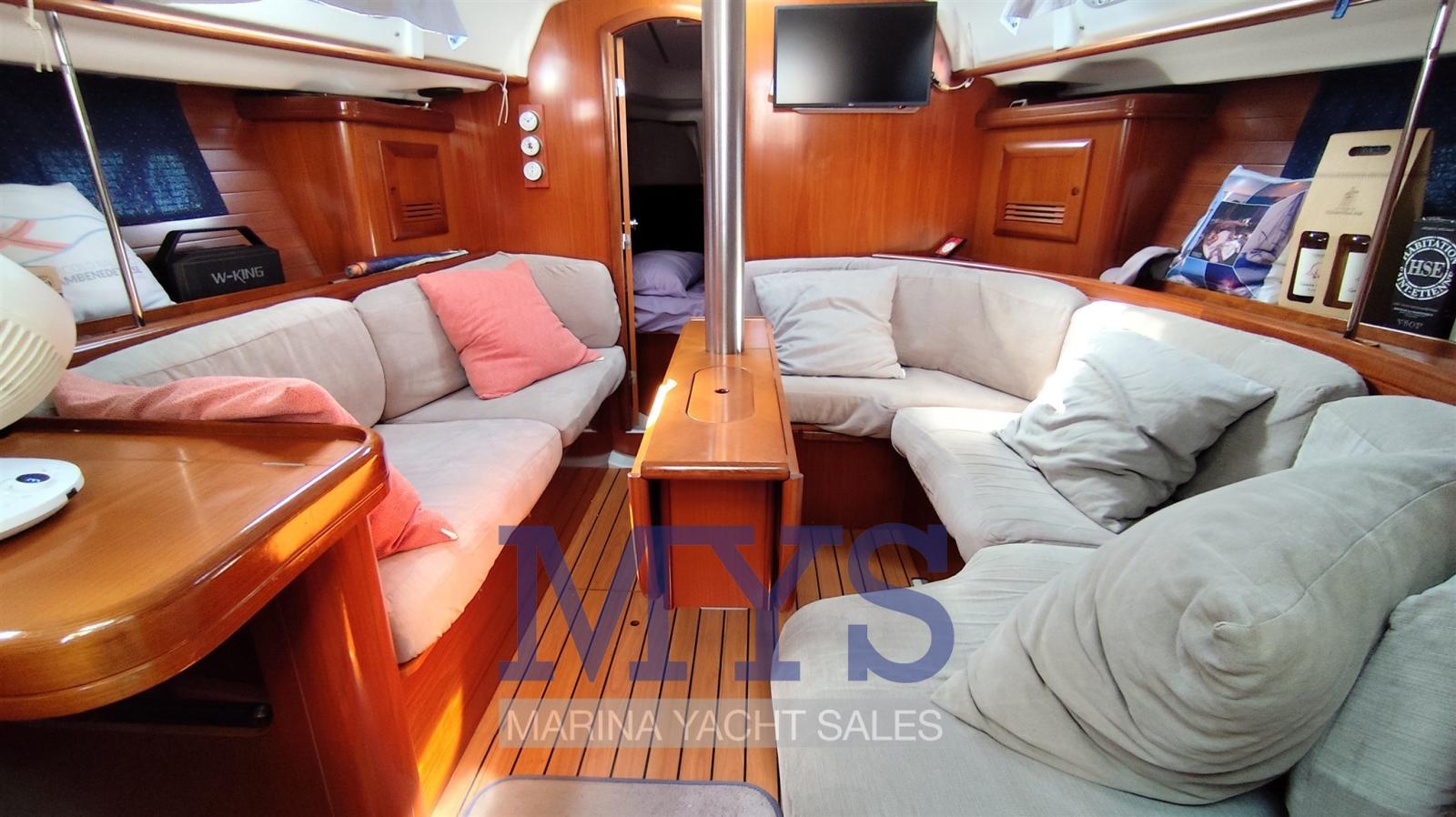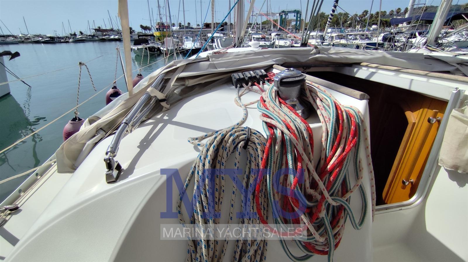 Alternateur, Eau sous pression, Douche de cockpit, Extincteur(s) fixe(s), Panneau solaire, Prise de quai, Connexion eau sous pression à quai, Guindeau électrique, Gréement monotoron, Echelle de bain, Chaise support HB, table de cockpit, Table pliante de salon, Winch électrique avant.