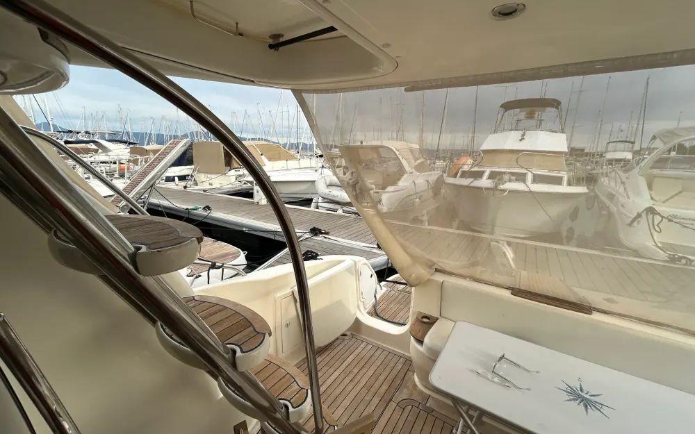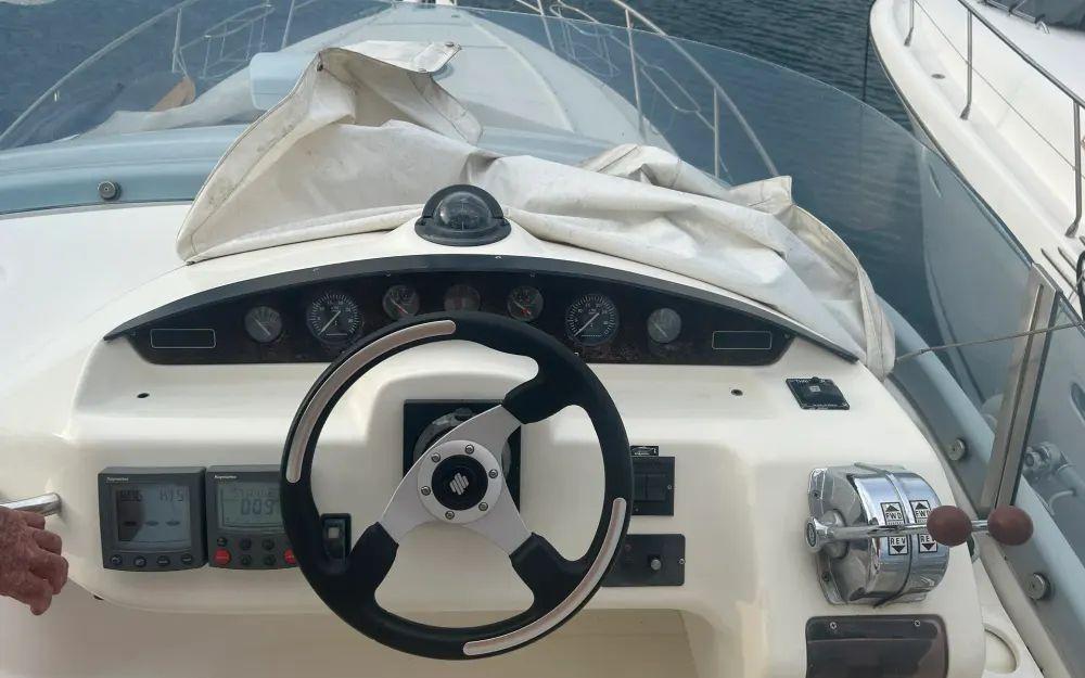 Ce Cranchi allie fiabilité, performance et confort de navigation. Il dispose d’une double commande (poste de pilotage intérieur et extérieur), de quatre batteries neuves installées récemment, et de panneaux solaires, apportant une autonomie appréciable lors des sorties prolongées.