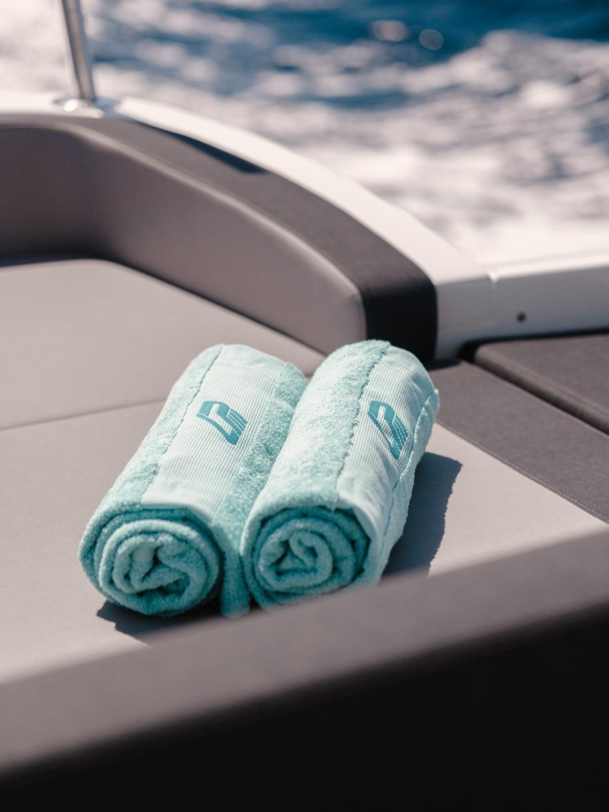Eau sous pression, Douche de cockpit, Flaps hydrauliques (N°2), Passerelle, Plateforme arrière, Pompe de cale automatique, Onduleur, Rollbar, Guindeau électrique, Echelle de bain.
