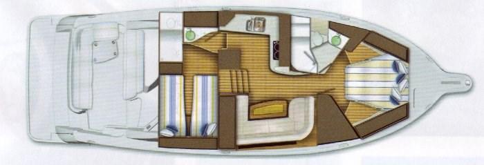 Alarme moteur, Eau sous pression, Douche de cockpit, Flaps hydrauliques, Extincteur(s) fixe(s), Plateforme arrière, 3 Pompe de cale électrique, Prise de quai, Guindeau électrique, table de cockpit.