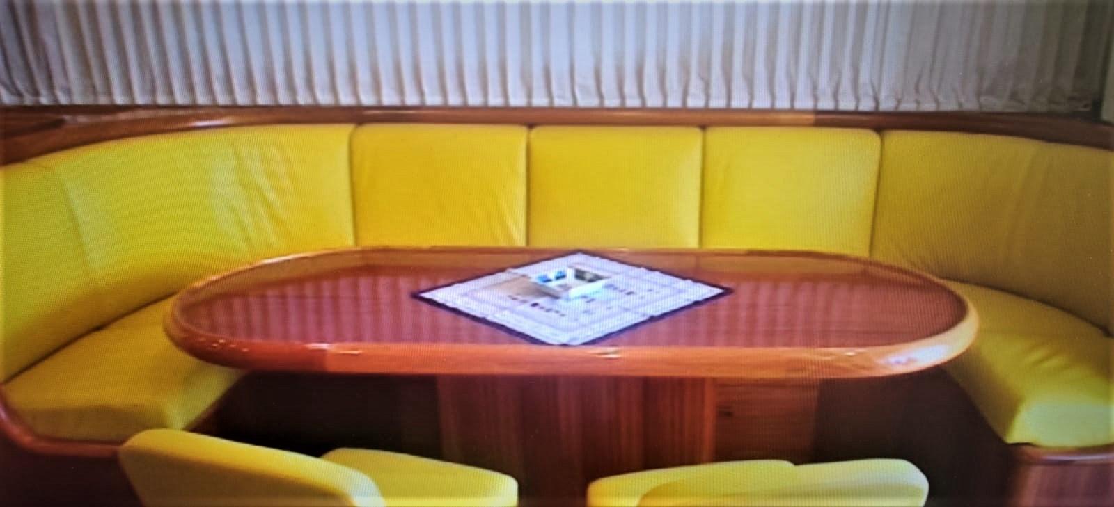Alarme moteur, Alarme de pompe de cale, Eau sous pression, Passavant en teck, Douche de cockpit, Phare de poursuite, Flaps hydrauliques, Indicateurs de flaps, Éclairage de courtoisie, Passerelle, Plateforme arrière (in teack), Pompe de cale automatique, Pompe de cale manuelle, Cockpit en teck, Prise de quai, Connexion eau sous pression à quai, Onduleur, Guindeau électrique, Echelle de bain, table de cockpit, Corne, Winch électrique arrière.