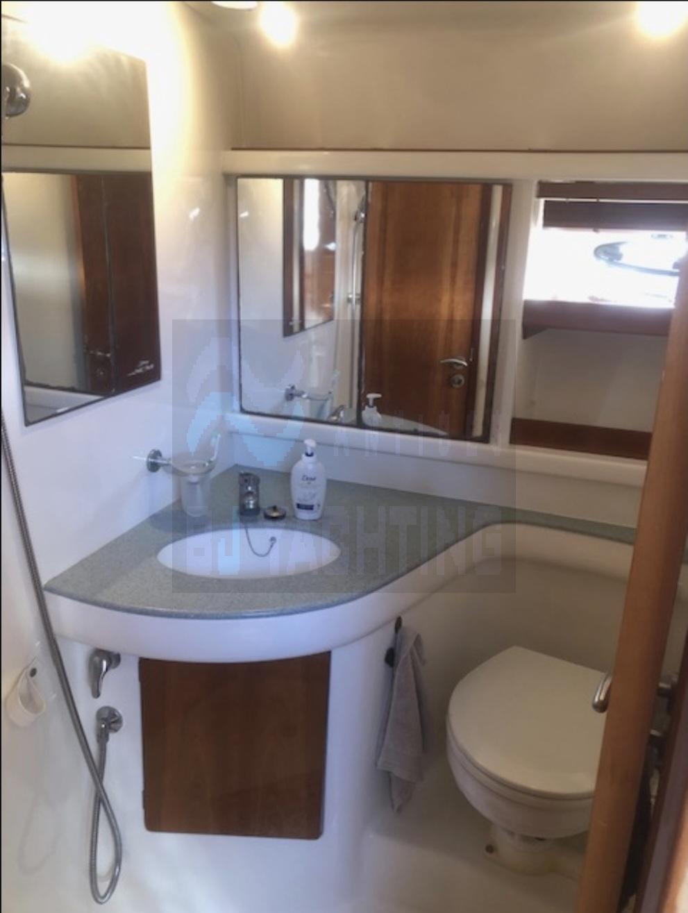 Confort à bord : Pont en teck, taud de soleil, coussins bain de soleil, douche de pont, chauffe-eau