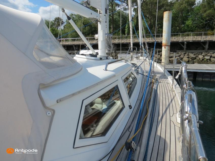 Mot du propriétaire : Deuxième propriétaire de ce Contest 55, je peux dire qu'il a été bien plus qu'un simple bateau pour moi : un véritable compagnon de voyage. J'ai beaucoup navigué à son bord, en croisières hauturières avec de belles escales, toujours avec le même sentiment de sécurité, de confort et de plaisir marin. Au fil des années, je l'ai entretenu et remis en état sans jamais compter, avec l'exigence de conserver ses qualités d'origine tout en le modernisant. Chaque amélioration a été pensée pour naviguer loin et longtemps : groupe électrogène sorti et révisé entièrement, climatisation pour le confort sous toutes les latitudes, voiles neuves performantes (Hydranet), gréement dormant entièrement neuf... C'est un bateau sain, prêt à repartir, qui inspire confiance dès les premiers milles et qui n'attend qu'un nouveau propriétaire pour poursuivre son histoire.