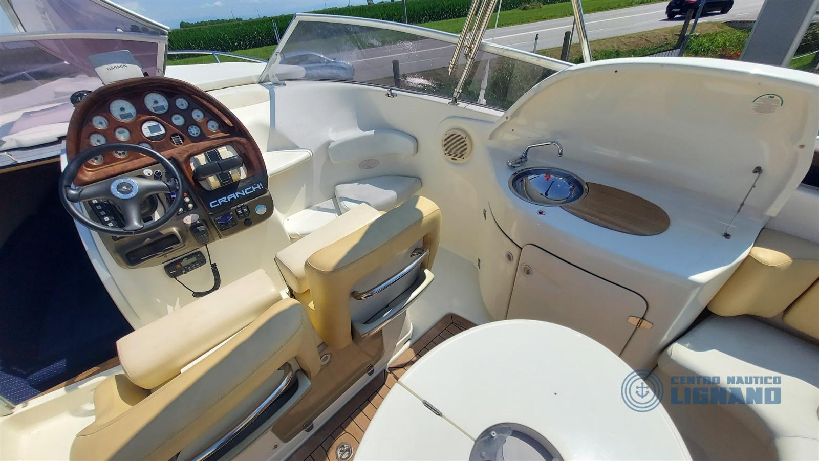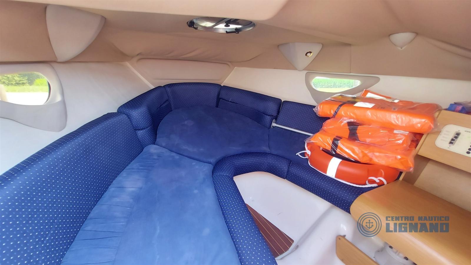 Cranchi CSL 27 de 2007 avec nr. 2 moteurs Volvo Penta EFB 4.3 GXI 225 CV d’injection, pied d’hélice double, cabine double avec 2 couchages et WC. ATTENTION : liste exhaustive de travaux effectués en juin 2025 tels que des élévateurs, des coupons, des pieds et bien plus encore. Le bateau mesure 8,57 mètres de long et 2,83 mètres de large et est sportif et amusant pour toute la famille. Doté d’un joli cockpit spacieux équipé de divers conforts, il offre un bain de soleil arrière très intéressant. Ce bateau est équipé de : couverture totale, plate-forme arrière avec échelle escamotable, plate-forme arrière en teck synthétique EVA, solarium également à l’avant avec coussins complets, cabine avec 2 lits et matelas, trappe ouvrante dans la cabine, lampes de courtoisie et de lecture, toilettes électriques internes sous les sièges, plancher en bois, système stéréo avec 2 haut-parleurs, interrupteur de batterie et panneau utilitaire avec thermiques, prise 12V, radio VHF avec microphone externe, ordinateur Volvo Penta EVC, volets électriques, trim, ordinateur double données, compas, porte coulissante verticalement avec clé, divers indicateurs (température, erreurs, pression d’huile, alternateur, niveau de carburant, position du trim, erreurs importantes, compte-tours), évier externe à l’intérieur du wetbar, réfrigérateur externe avec glacière, interrupteur de batterie, câble de quai, pompe de cale, Système d’extinction automatique d’incendie, salle des machines avec ouverture électrique, double batterie, chaudière à eau chaude, chargeur de batterie, réservoir en acier inoxydable, table extérieure pliante, porte d’accès à la proue, équipement d’amarrage, auvent avec bimini en acier inoxydable, autre en vue).