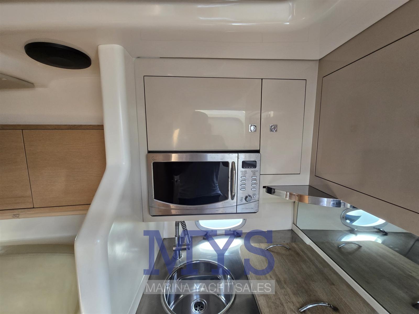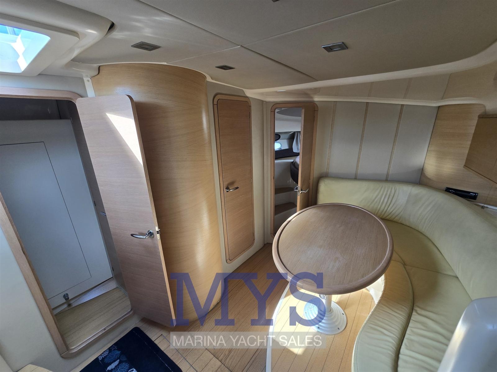 Alarme moteur, Alarme de pompe de cale, Eau sous pression, Couleur spéciale (Scafo con fascia blù), Douche de cockpit, Flaps hydrauliques, Indicateurs de flaps, Passerelle (Idraulica), Plateforme arrière, Pompe de cale automatique, Porte latérale, Cockpit en teck, Prise de quai, Rollbar, Guindeau électrique, Echelle de bain, table de cockpit, Corne.