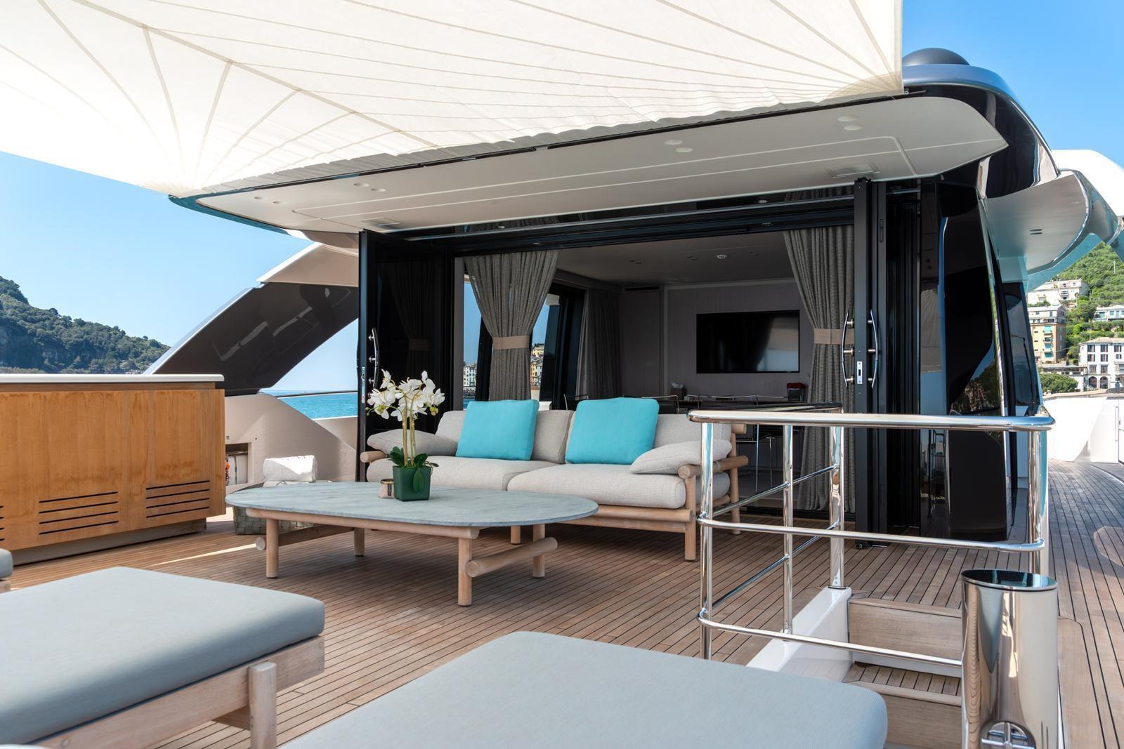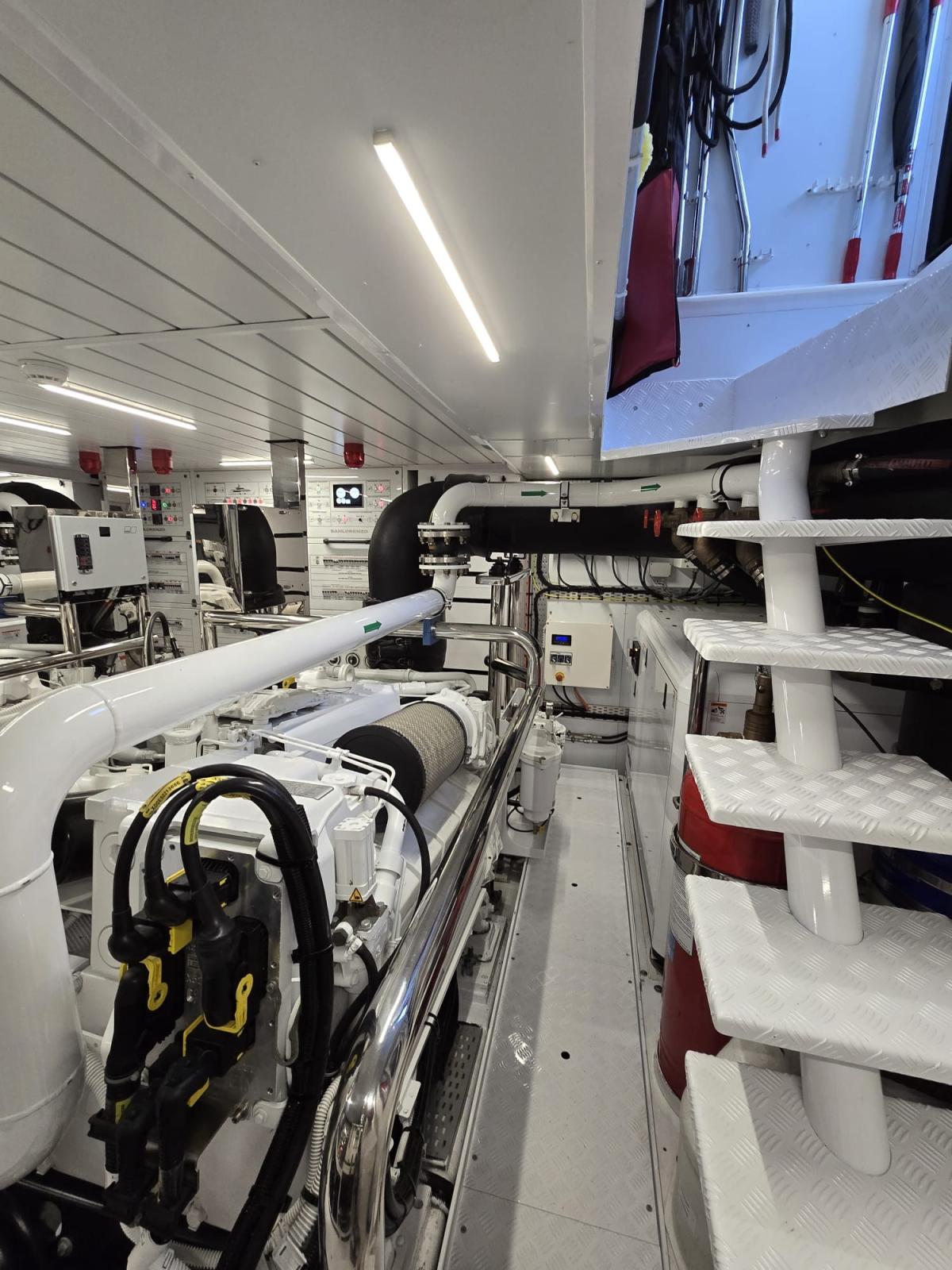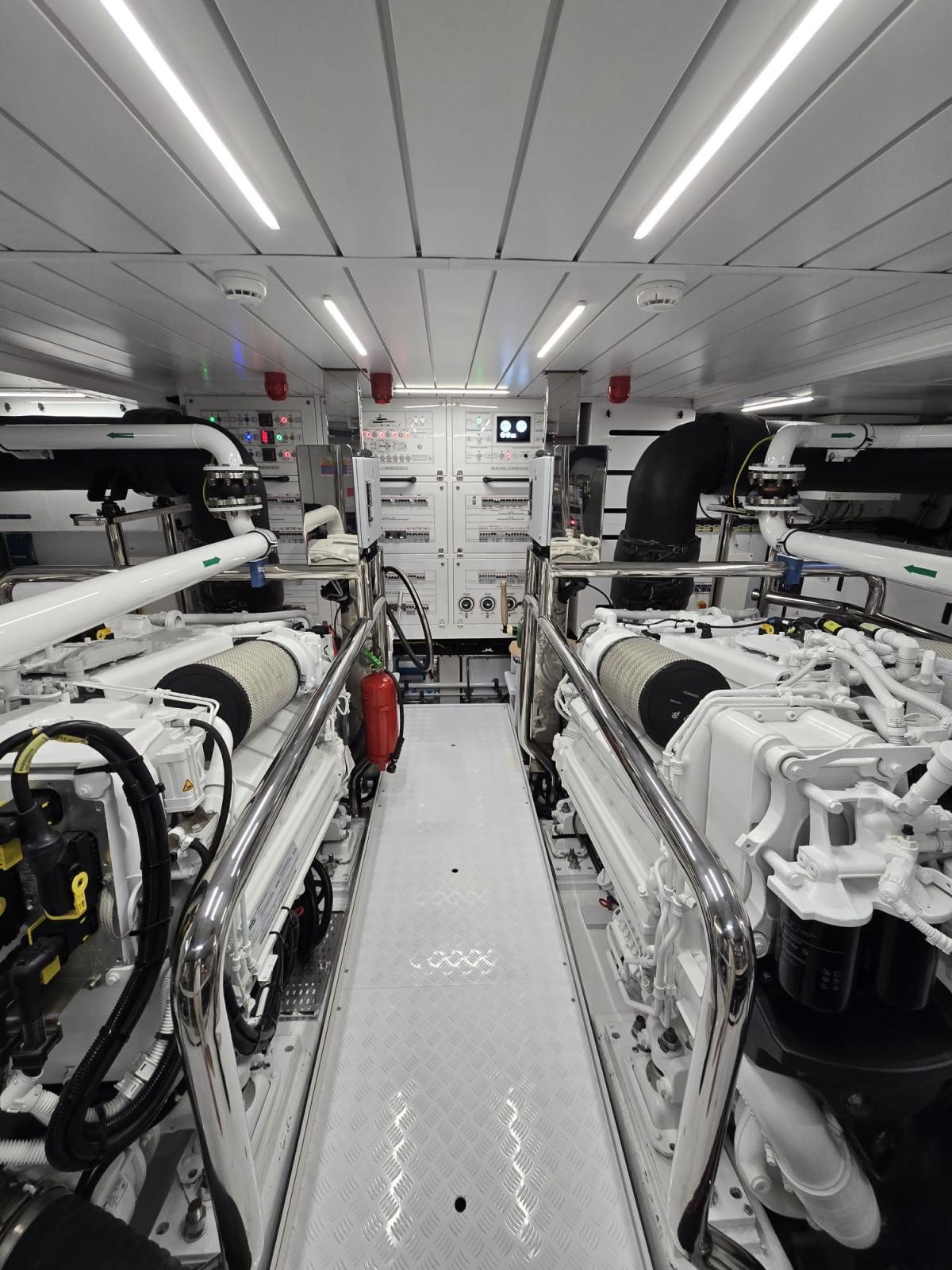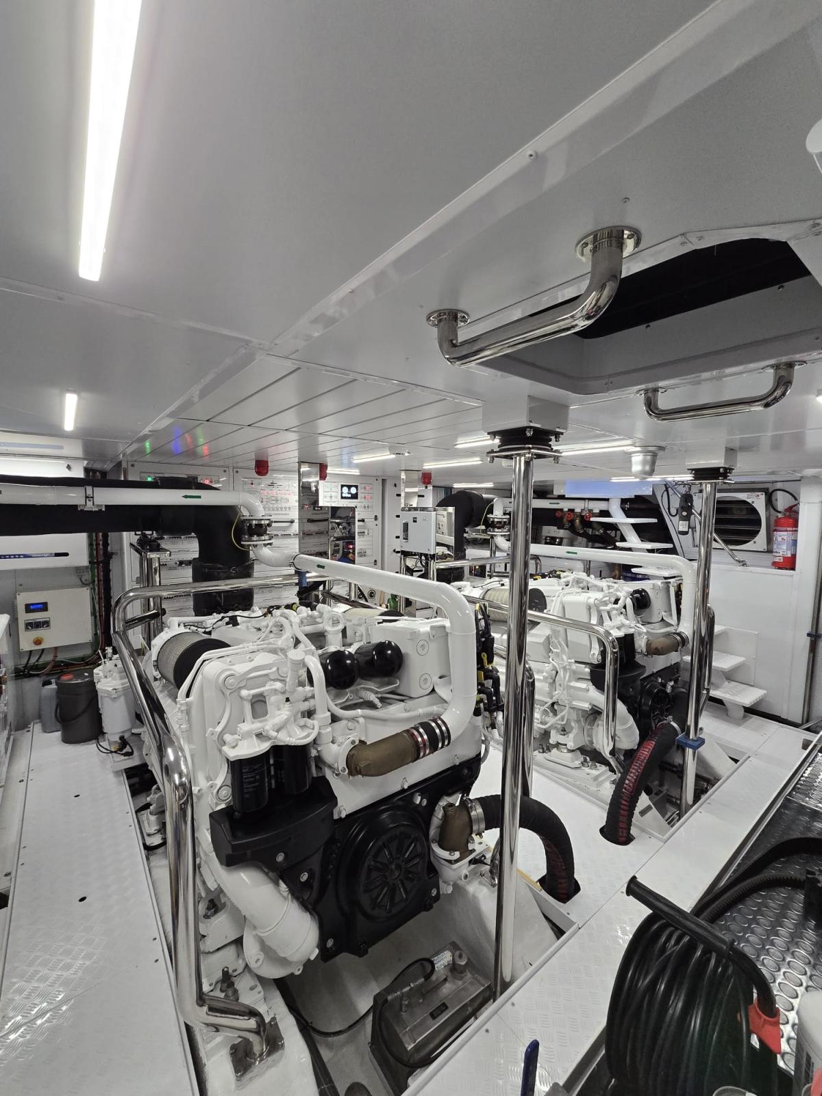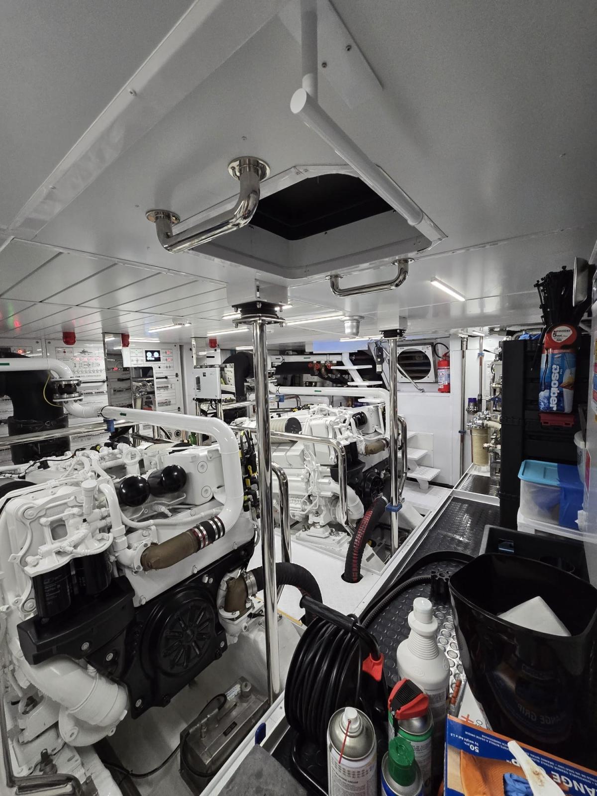 Alarme moteur, Alarme de pompe de cale, Alternateur, Eau sous pression, Câble d’alimentation à quai, Filères, Douche de cockpit, Double barre à roue, Garage à annexe, Indicateurs de flaps, Lavabo dans le cockpit, Éclairage de courtoisie, Passerelle, Plateforme arrière, Pompe de cale automatique, Pompe de Lavage du Pont, Porte latérale, Prise de quai, Connexion eau sous pression à quai, Guindeau électrique, Echelle de bain, Stabilisateurs, table de cockpit, Corne, Winch.