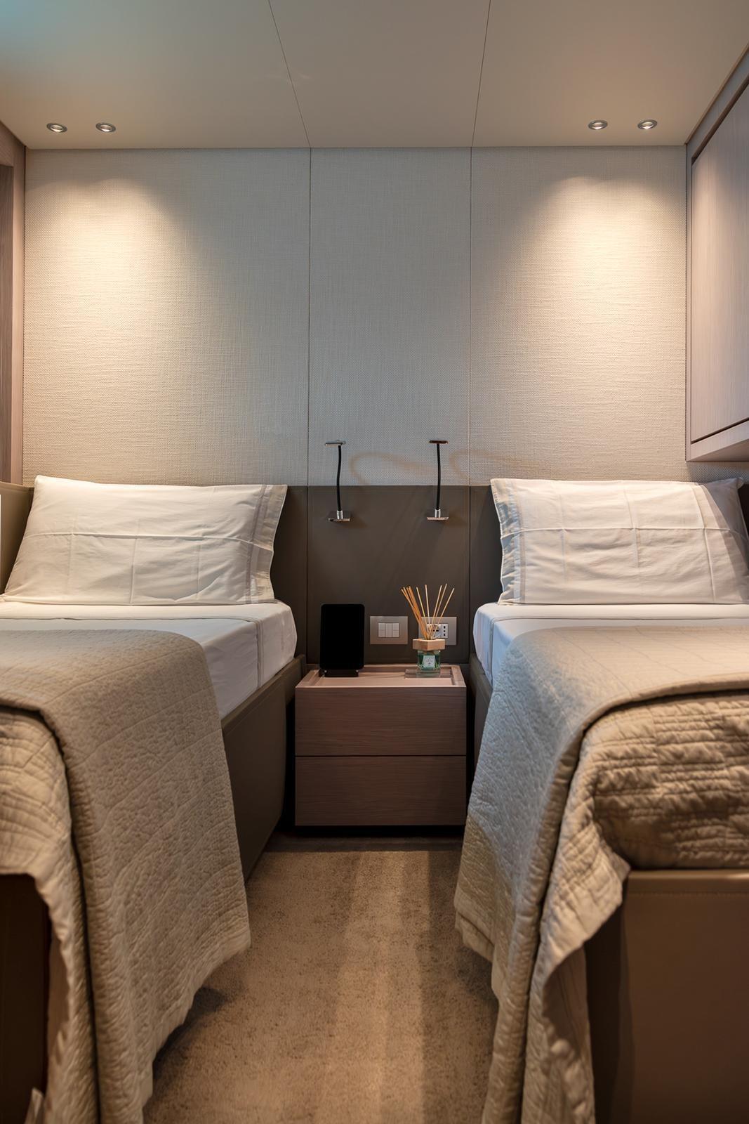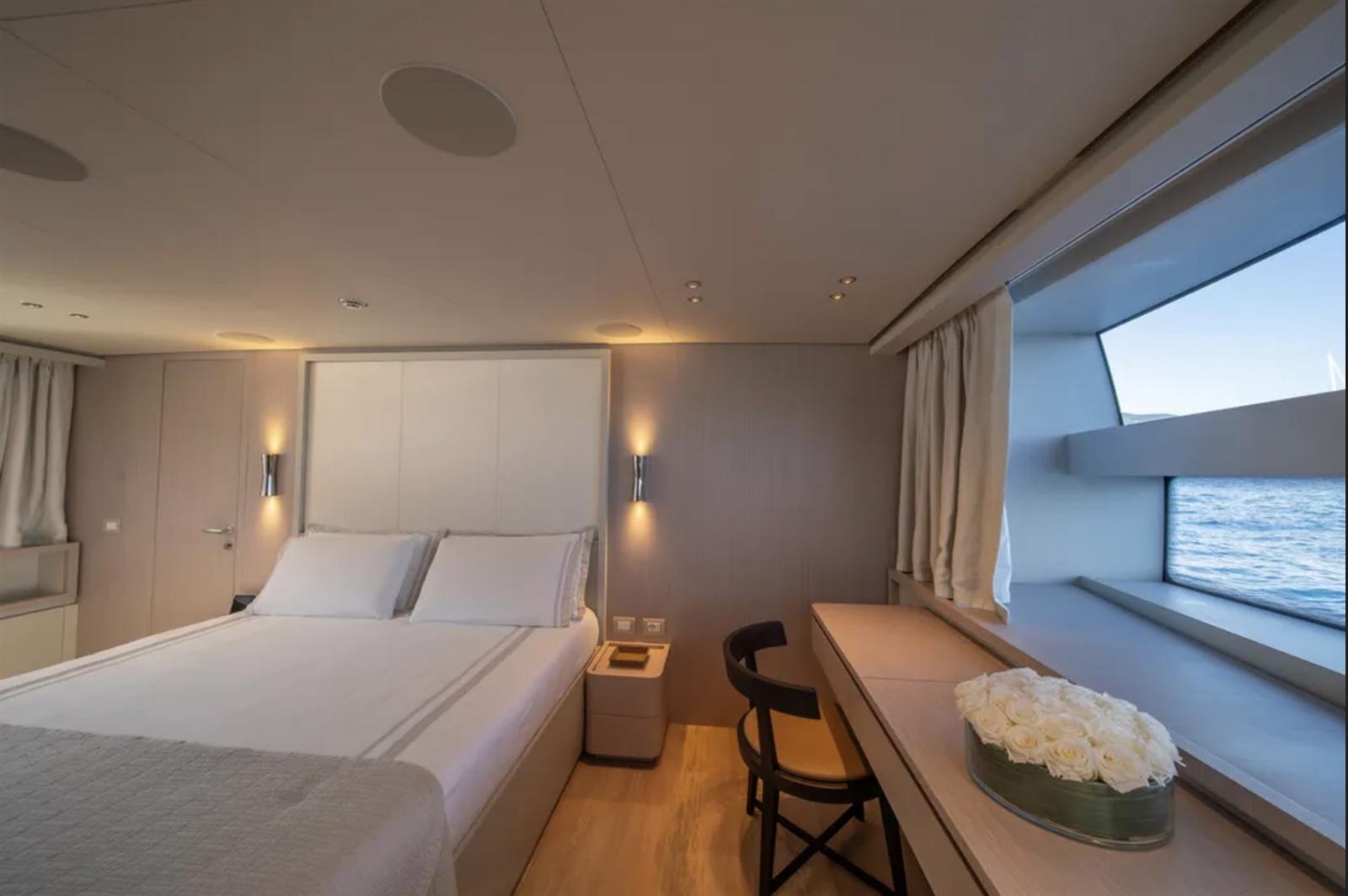 5 cabines, 6 salles de bain plus 3 cabines pour l’équipage