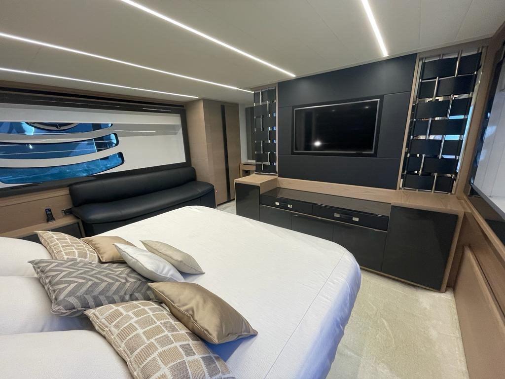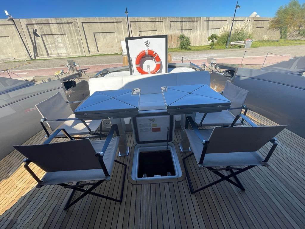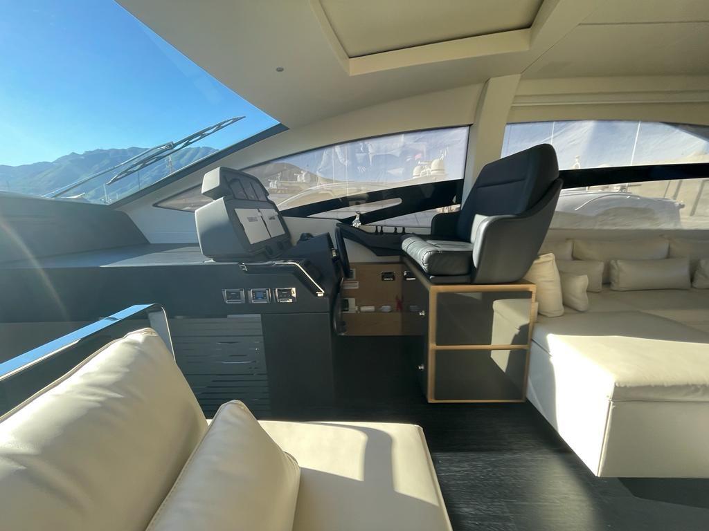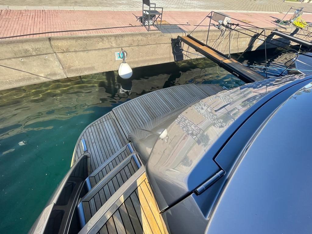 Ancre (50kg, 150mt chain), Eau sous pression, Passavant en teck, Douche de cockpit, Éclairage de courtoisie, Spots sous-marins, Passerelle (Hydraulic), Cockpit en teck, Connexion eau sous pression à quai, Guindeau électrique, Echelle de bain, Stabilisateurs (Seakeeper 9).