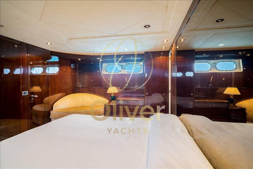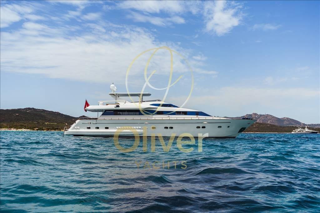 Le FALCON 92 est un Motoryacht élégant et classique construit en 1996 par CTM-Falcon, avec les normes de qualité et de construction les plus élevées, typiques de ce célèbre chantier naval italien, avec des espaces extérieurs et intérieurs typiques des grands yachts. Le yacht a fait l’objet d’un important refit au cours des deux dernières années, les travaux comprenaient la peinture de la coque, l’assemblage d’un nouveau Hard Top en fibre de verre, un nouveau pont en teck, un nouvel agencement du flybridge avec de nouveaux bains de soleil et une grande table, l’installation de l’ensemble du nouveau pack électronique de bord, un nouveau système de climatisation dans toutes les pièces, la modification des stabilisateurs Vosper pour les mettre à jour vers le système « Zero Speed » (devis Vosper/Naiad disponible) et de nombreuses autres interventions décrites dans les accessoires. Un yacht unique en son genre, prêt pour la bouée.