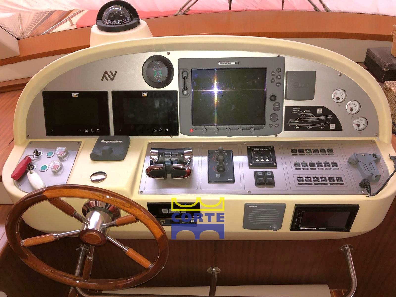 Antenne radar, Commande électrique, Compteur de chaîne, Moniteur, Pilote automatique (Raymarine), Plotter GPS (Raymarine), Radar (Raymarine), Radio VHF (Raymarine), Siège copilote, Yacht controller.