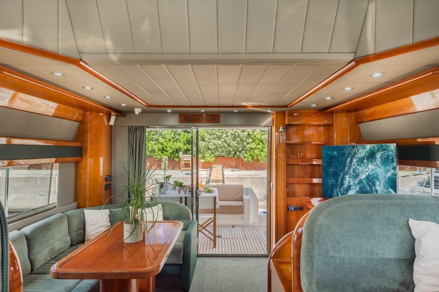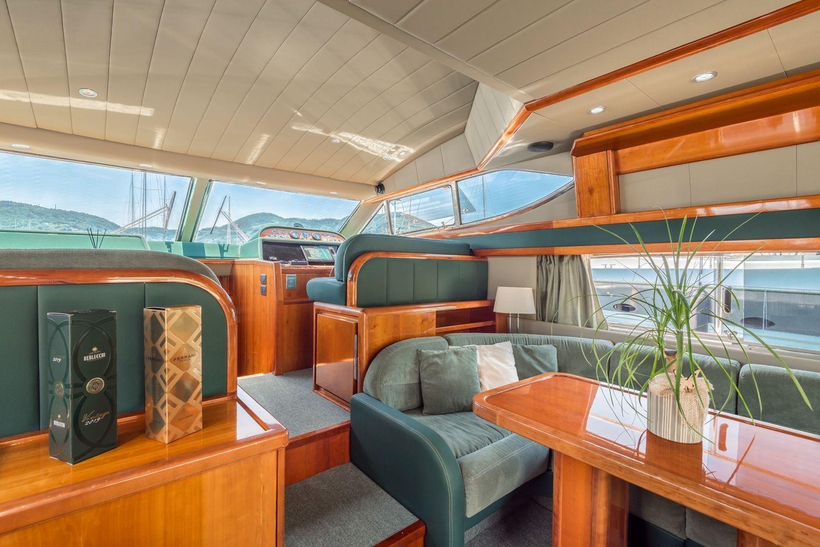 2 Eau sous pression (2022), 8 Batteries (2024), Chargeur de batterie (Quick Silver), Flaps électriques, Bossoirs, Grue de flybridge, Passerelle (Besenzoni), Porte latérale, Cockpit en teck, Répétiteur électronique, Guindeau électrique, 2 Echelle de bain, table de cockpit, Annexe (Zodiac Yachtline 3,70 - 30cv), Corne.