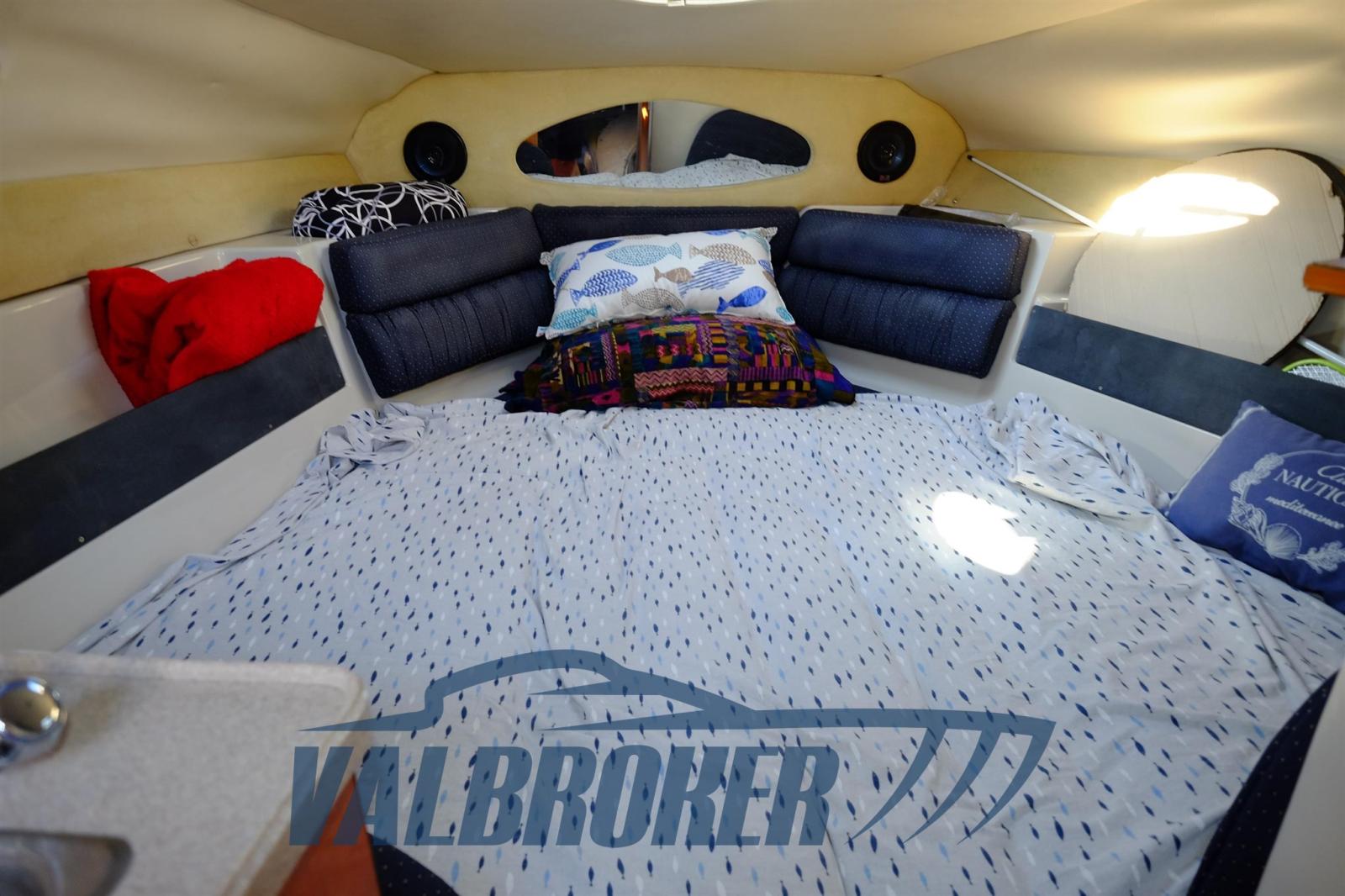 Chantier américain, Regal Marine 2665, propulsé par 1 x 320 CV - Mercruiser 6.2 V8 Essence. Bateau parfait pour des excursions d’une journée ou un camping nautique dans le confort. Pratique et confortable pour les sports nautiques. Meuble arrière, dînette convertible, salle de bain et cuisine. Plate-forme de bain allongée.