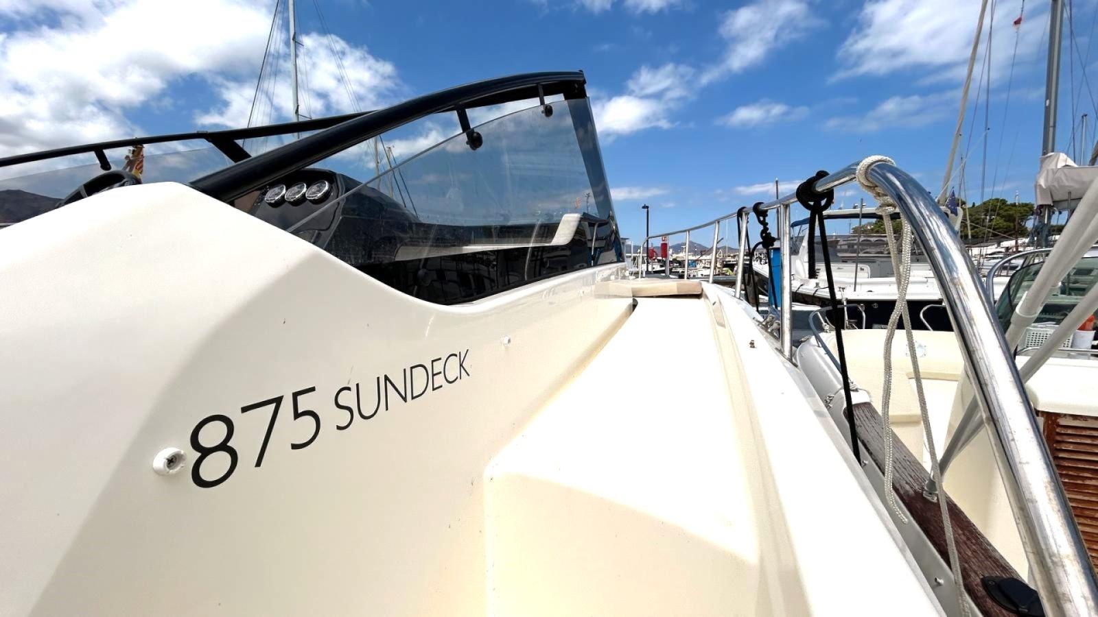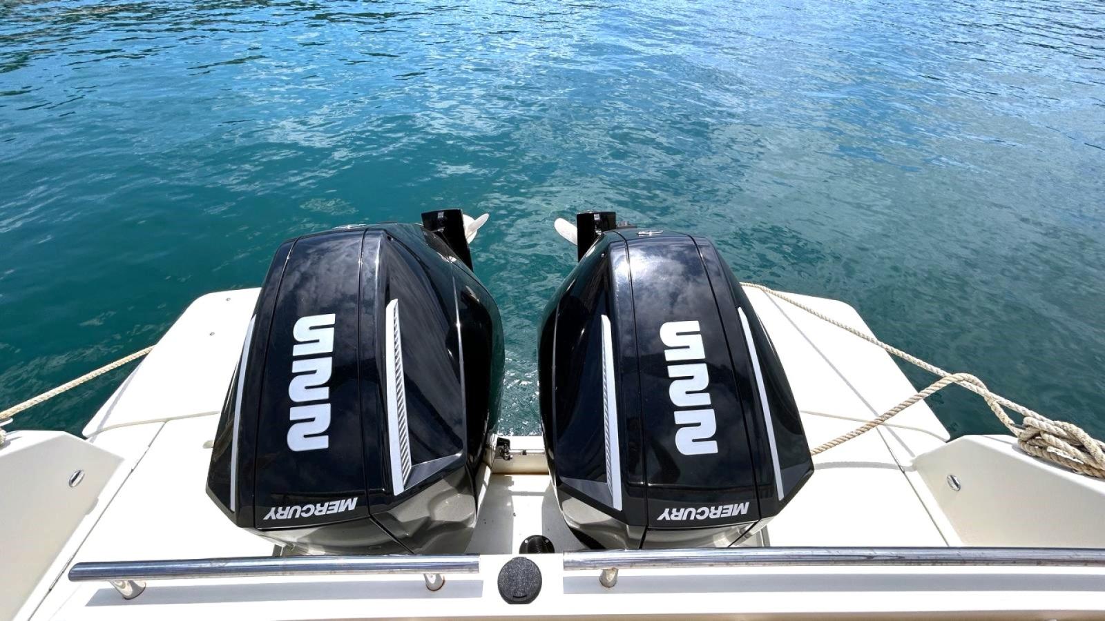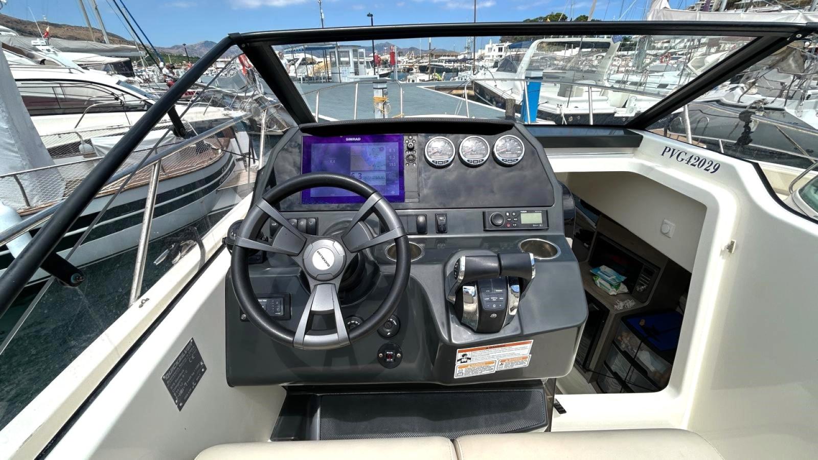 Quicksilver 875 Sundeck, 2x225cv Mercury V6 mis à l'eau 2022, seulement 57h. Électronique Simrad tactile, GPS, traceur, sondeur, bimini, bains de soleils convertibles, cuisine extérieure, audio Fusion... REPRISE, FINANCEMENT ET PLACE DE PORT POSSIBLES. Contact Mike: 06.11.18.51.01.