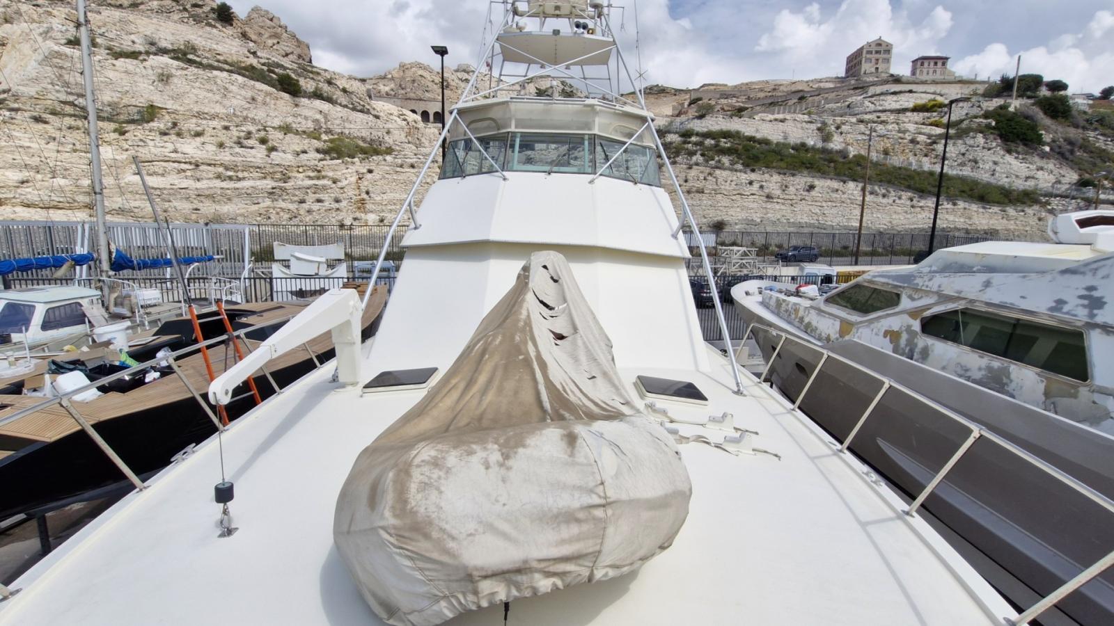 Exclusivité ! HATTERAS 60 Fly, DETROIT DIESEL 900cv*2. Equipé pêche hauturière avec tangons, GPS, radar, annexe 30cv, grue électrique, expertise de 2020...REPRISE ET PLACE DE PORT POSSIBLES. Contact : Frédéric : 06.13.19.41.59