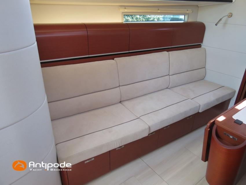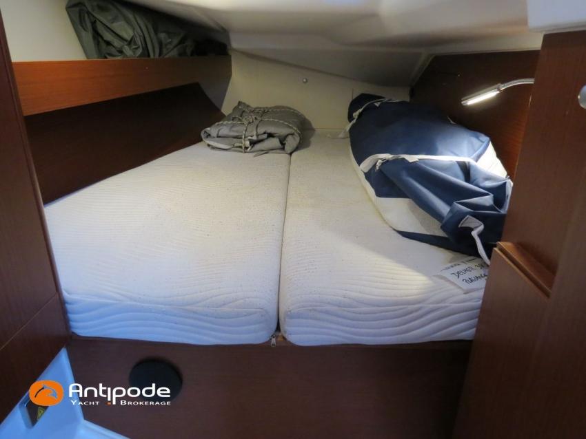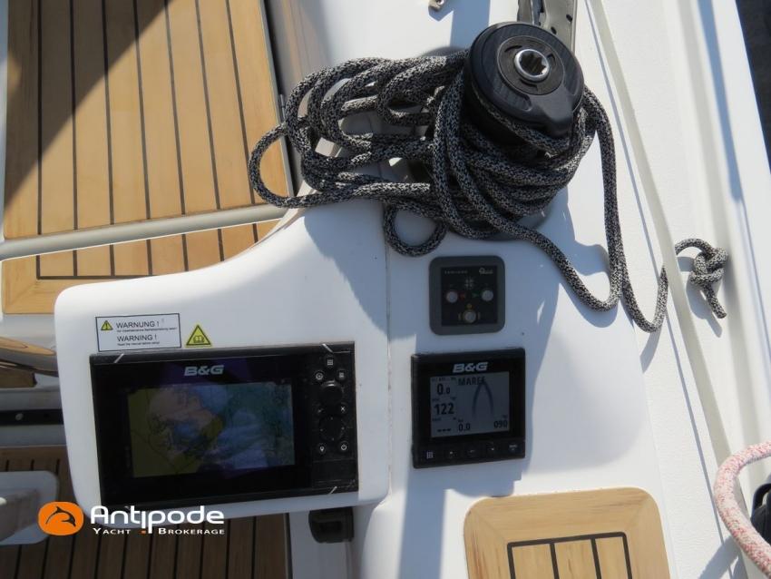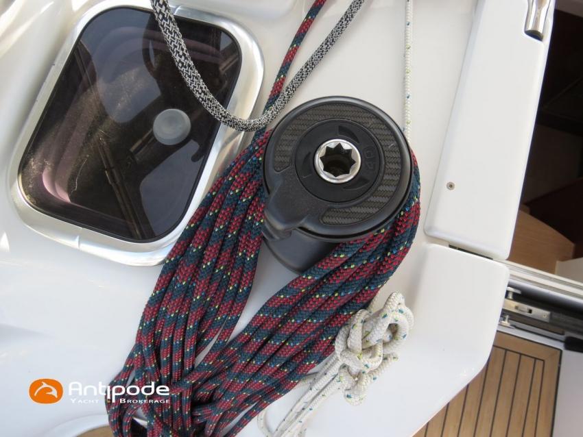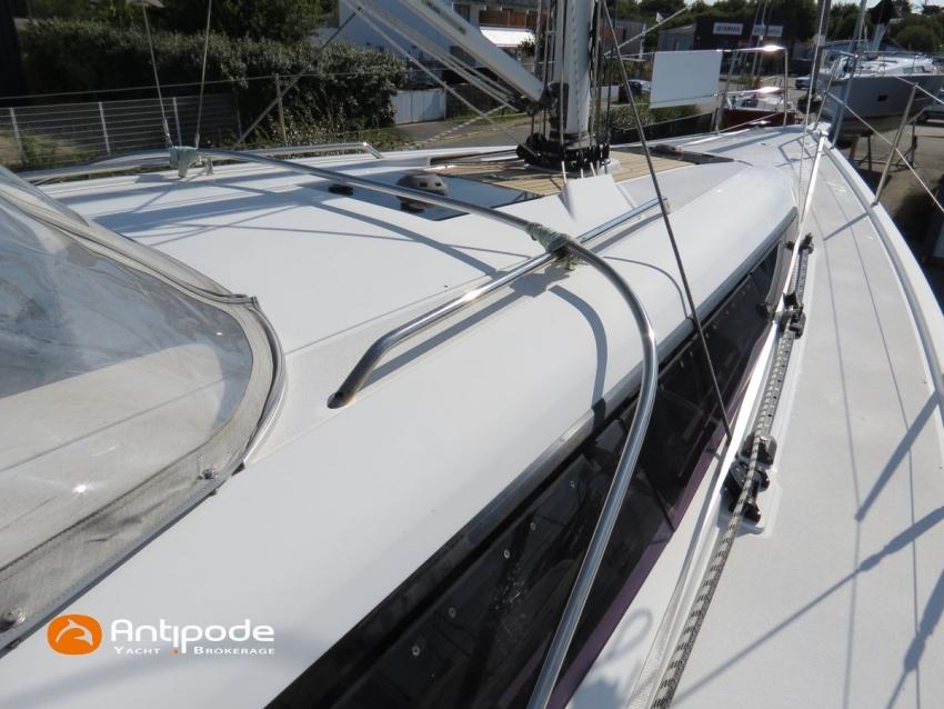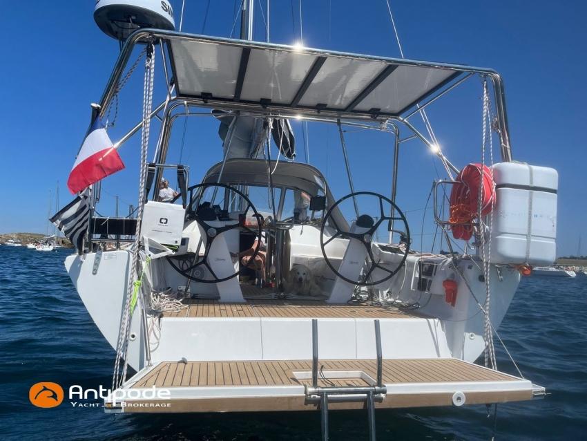 DEHLER 38 SQ, 2021, VOLVO D2-40, 40 cv (346 h), Propulseur d'étrave, Version d'aménagement intérieur 1 cabine avant, 2 cabines arrière, 2 winchs d'écoutes de génois dans le cockpit - Lewmar 46ST, 2 winchs d'écoute de grand voile (german sheet) - Lewmar 40ST, 2 winchs sur roof pour réglages et manoeuvres dont 1 électrique - Lewmar 40ST, Delphinière composite, Support radeau de survie dans les balcons, Dessus de roof Flexyteek, Fond de cockpit Flexyteek, Assises de cockpit Flexyteek, Jupe arrière basculante recouverte de Flexyteek, Taquets d'amarrage rétractables, Protections d'étrave et de delphinière en inox, Table de cockpit avec abattants bois, Double barres à roue composite, Capote de roof, Bimini top cockpit, Guindeau électrique - Quick 800W, Portique arrière avec bossoirs, Ouvertures latérales dans les filières, Passerelle arrière , Support moteur hors-bord, Tauds de fermeture arrière complète du cockpit, Mât aluminium rétreint posé sur la quille - Selden, Gréement dormant Rod, Grand-voile à corne full batten - Quantum, Lazy-bag de grand voile, Lazy-jacks de grand voile, Enrouleur de génois avec tambour sur le pont - Furlex 204S, Génois sur enrouleur - Quantum, Trinquette sur emmagasineur Facnor FX+1500 et drisse mouflée (voile neuve), Double pataras réglables, Pilote automatique in board - B&G, Centrale de navigation - B&G, 3 Répétiteurs cockpit, 2 x GPS / lecteur de carte dans le cockpit (un sur chaque poste de barre), Cartographie électronique, Radar - Simrad, Transpondeur AIS (émetteur récepteur), VHF ASN + combiné sans fil - B&G V60, Système audio Fusion RA70N + boitier de commande dans le cockpit + HP, Unité réfrigérante 12 V ouverture par le dessus + porte frontale, Conservateur froid négatif (freezer) à tiroir sous assise du carré, Batteries service Lithium, Convertisseur 12 V / 220 V, Contrôleur / gestionnaire de batteries, Chauffage air pulsé 5 sorties EBERSPACHER, Réservoir rigide eaux noires, Panneaux solaires - Solara 4 x 125W, Douchette de cockpit eau chaude / eau froide, Eau de mer sous pression dans la cuisine, Feux de navigations à Leds, Eclairages intérieurs directs et indirects à Leds, Radeau de survie (révisé décembre 2025), Mouillage principal ancre DELTA 16kg, 50m de chaine (2025) + cablot, Amarres et défenses, Annexe 2.50m, Moteur hors-bord Honda 2.3cv 4 tps (2024), Visible Bretagne. Pour plus d'informations ou pour fixer un rendez-vous de visite, contact : Jean-Baptiste Lemaire 06 10 25 00 03 - [email protected]