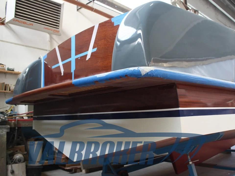 Cabine de douche arrière, 6 défenses, 2 extincteurs, 1 gaffe, housse de bateau, ligne d’échappement avec silencieux et tuyaux homologués RINA, système d’alimentation diesel avec préfiltre de décanteur, instrumentation moteur (tachymètre, pression d’huile, température de l’eau, compteur horaire), commande moteur et inverseur monocommande, sièges porte-bouteilles, bord de pare-chocs sur la ligne tressée sur les côtés, poignées de main courante des deux côtés du bain de soleil, Taquet d’amarrage à l’avant et à l’arrière, Support pour mât, mât en teck et drapeau Logement de l’ancre et ligne d’ancrage rétractable sur le pont à l’avant