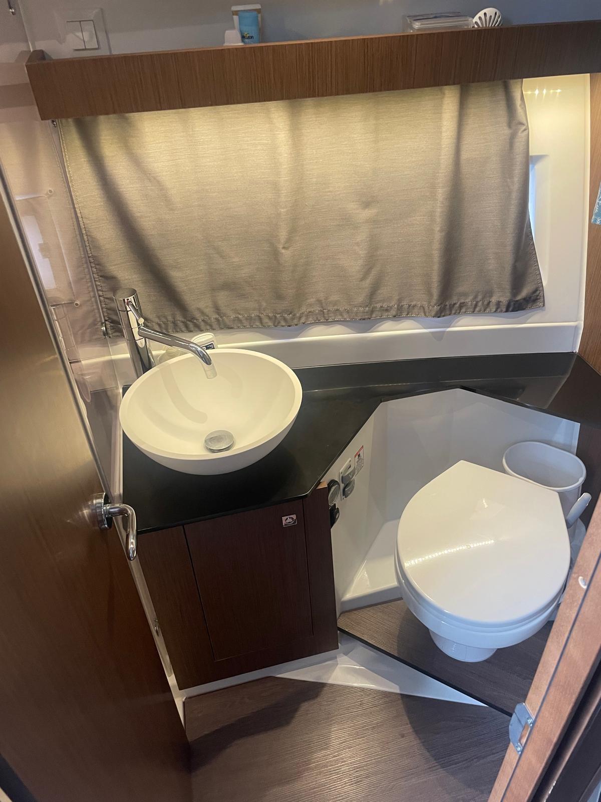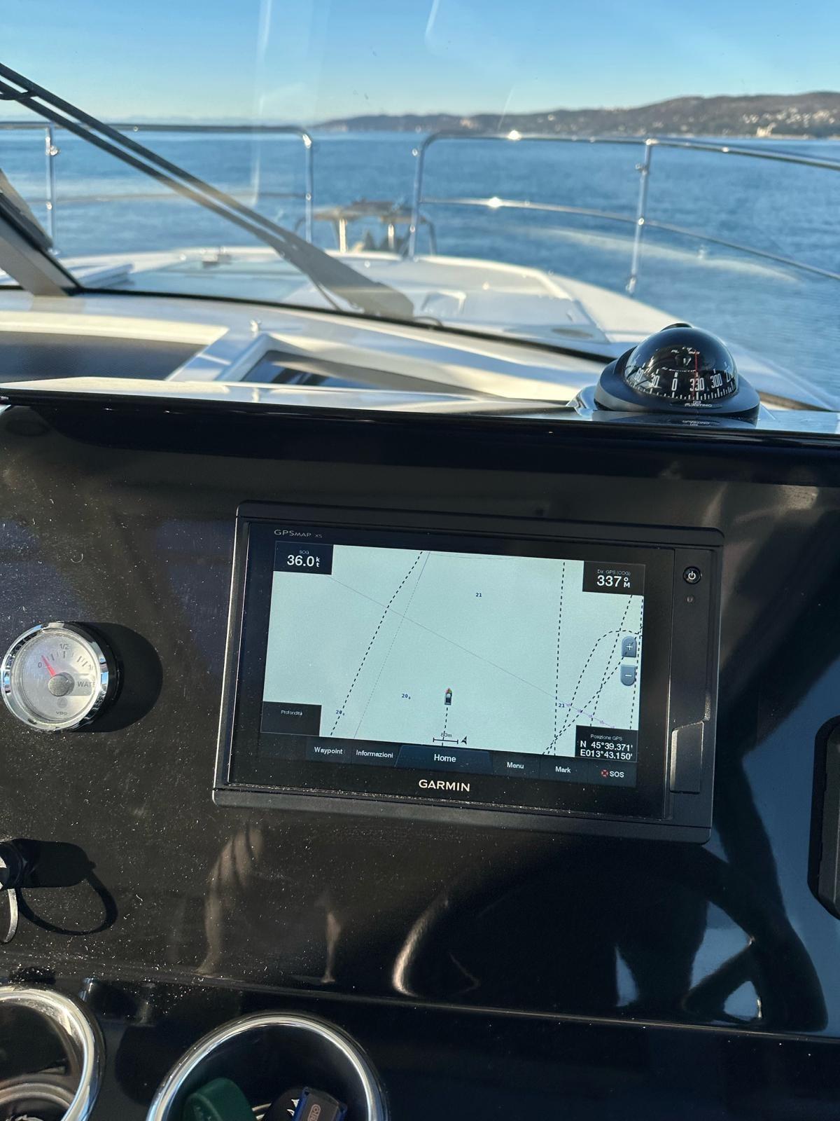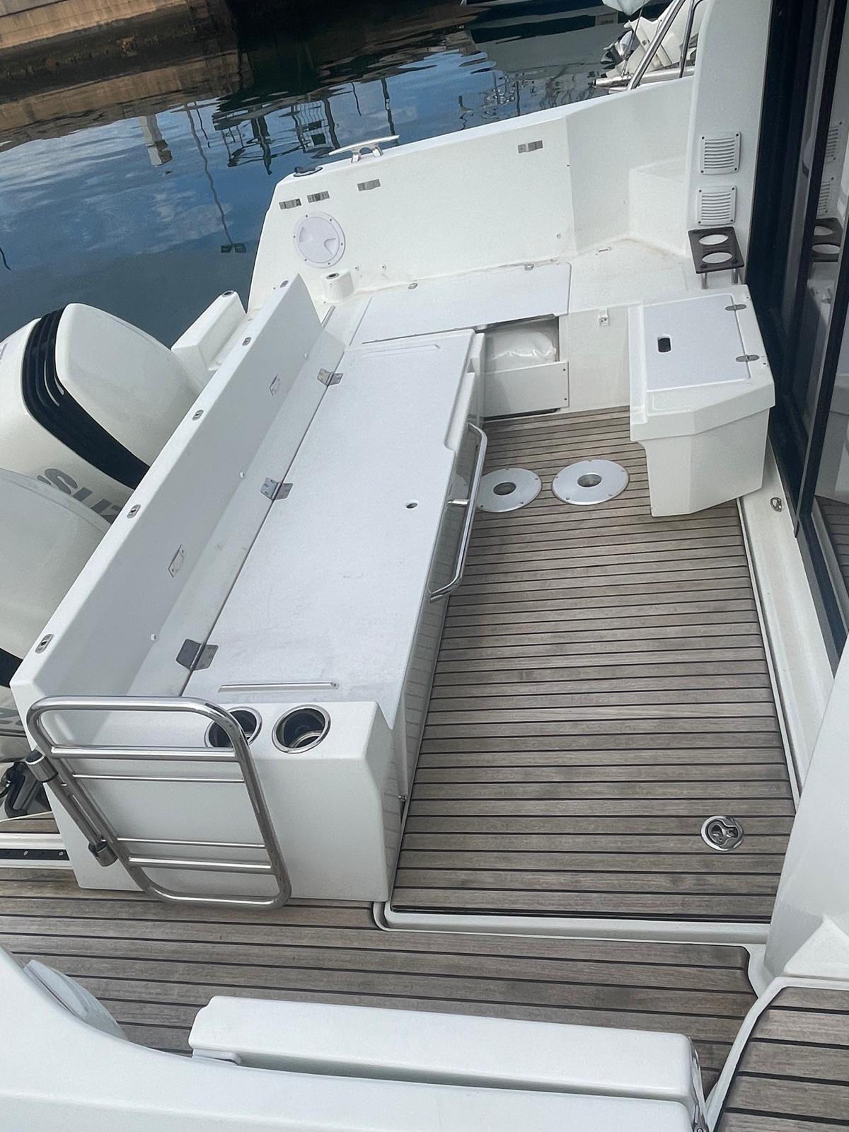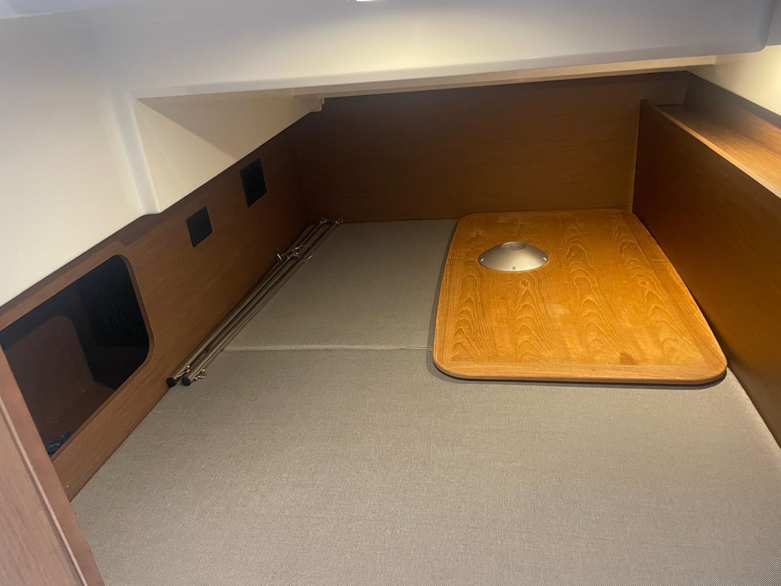 Alarme moteur, Alarme de pompe de cale, Eau sous pression, Passavant en teck, Douche de cockpit, Phare de poursuite, Flaps électriques, Indicateurs de flaps, Éclairage de courtoisie, Panneau solaire, Pompe de cale automatique, Porte latérale, Cockpit en teck, Prise de quai, Guindeau électrique, Echelle de bain, Corne.