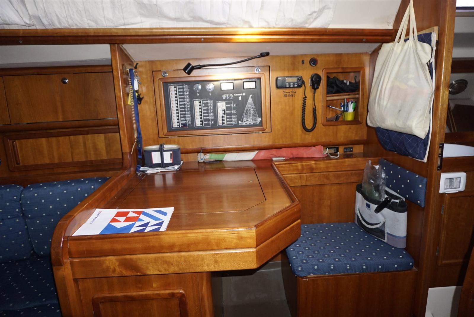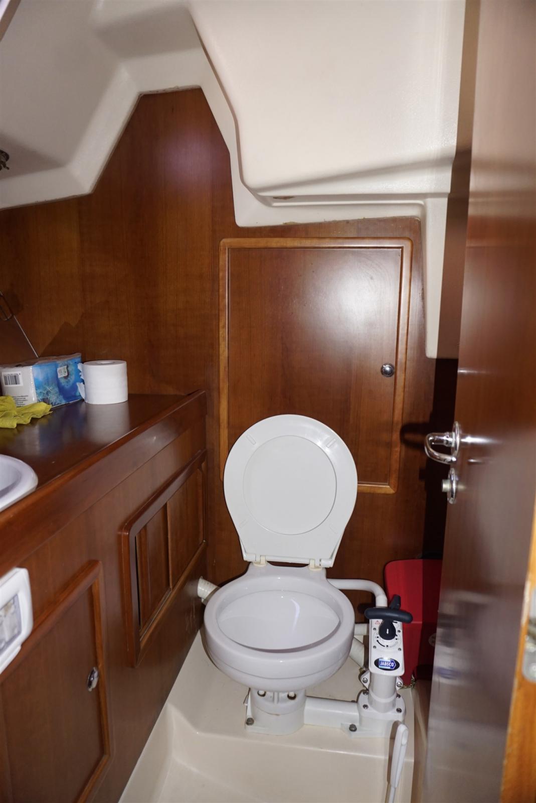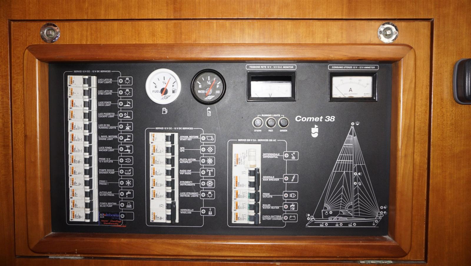 Ancre (15 kg + spare, 50 m chain), Eau sous pression, Câble d’alimentation à quai, Douche de cockpit, Panneau solaire, Passerelle, Pompe de cale manuelle, Cockpit en teck, Prise de quai, Guindeau électrique, Echelle de bain, table de cockpit, Winch (HARKEN), Windex.