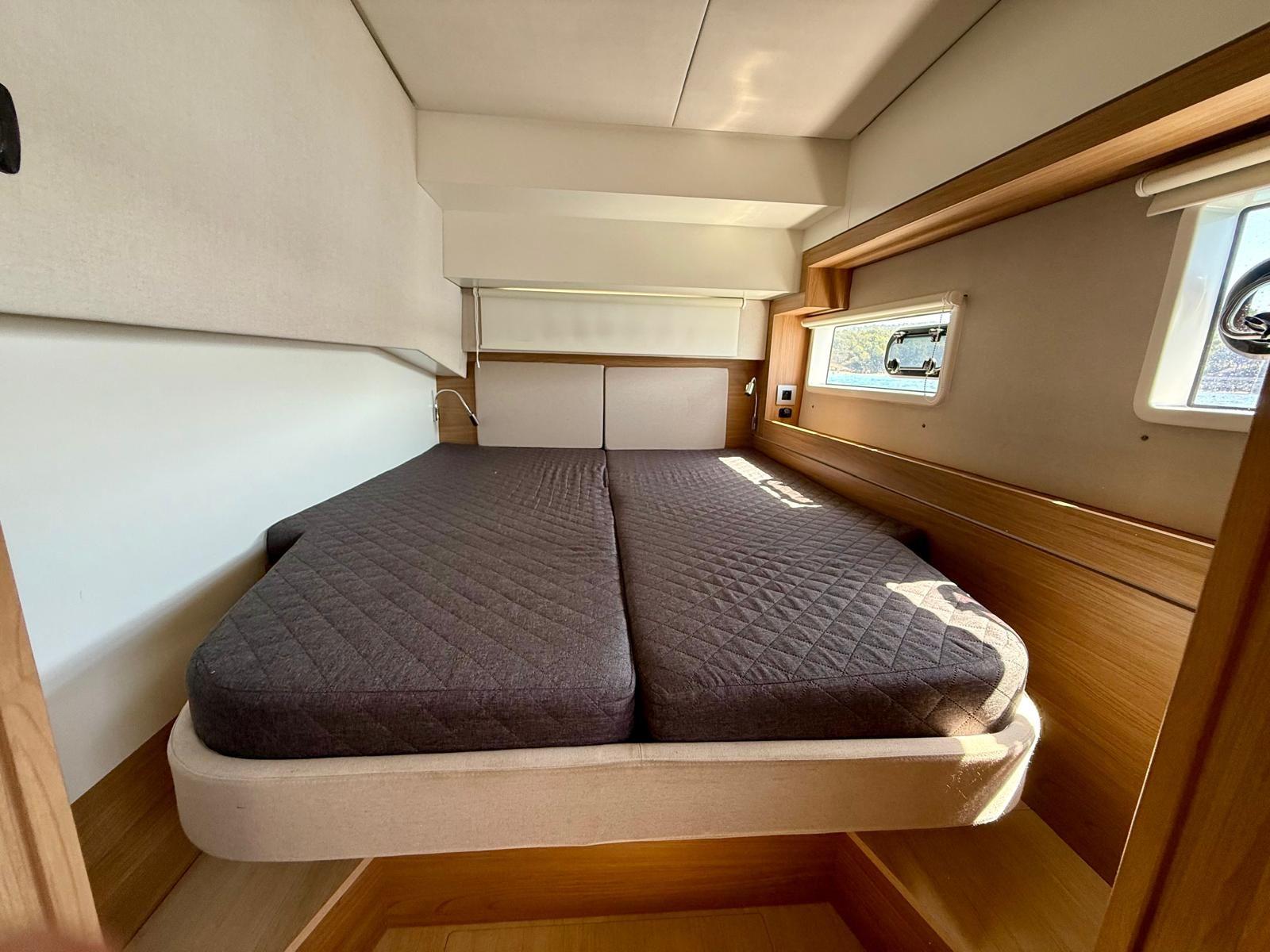 Pensé pour offrir une autonomie totale et un confort haut de gamme, il est équipé d’une climatisation réversible, d’un dessalinisateur, d’un groupe électrogène, de panneaux solaires et de grands réservoirs, idéals pour de longues croisières en toute sérénité.