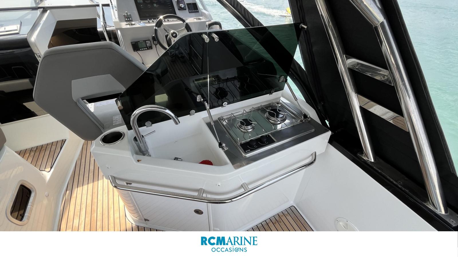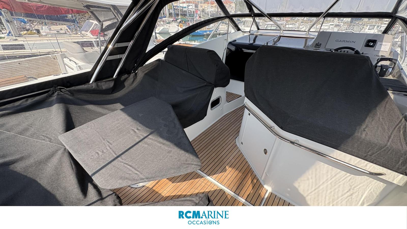 Très équipé ce bateau profite du hard top rigide avec taud de fermeture arrière, cockpit teck, pack électronic avec GPS GARMIN 16 pouces, mat de ski, plateformes de bains arrière, grand carré extérieur convertible, cuisine extérieur, carré intérieur transformable en couchage double. 2 cabines et un vaste espace toilette avec douche séparée viennent compléter les aménagements. Programme croisière avec un haut niveau de confort en famille.
