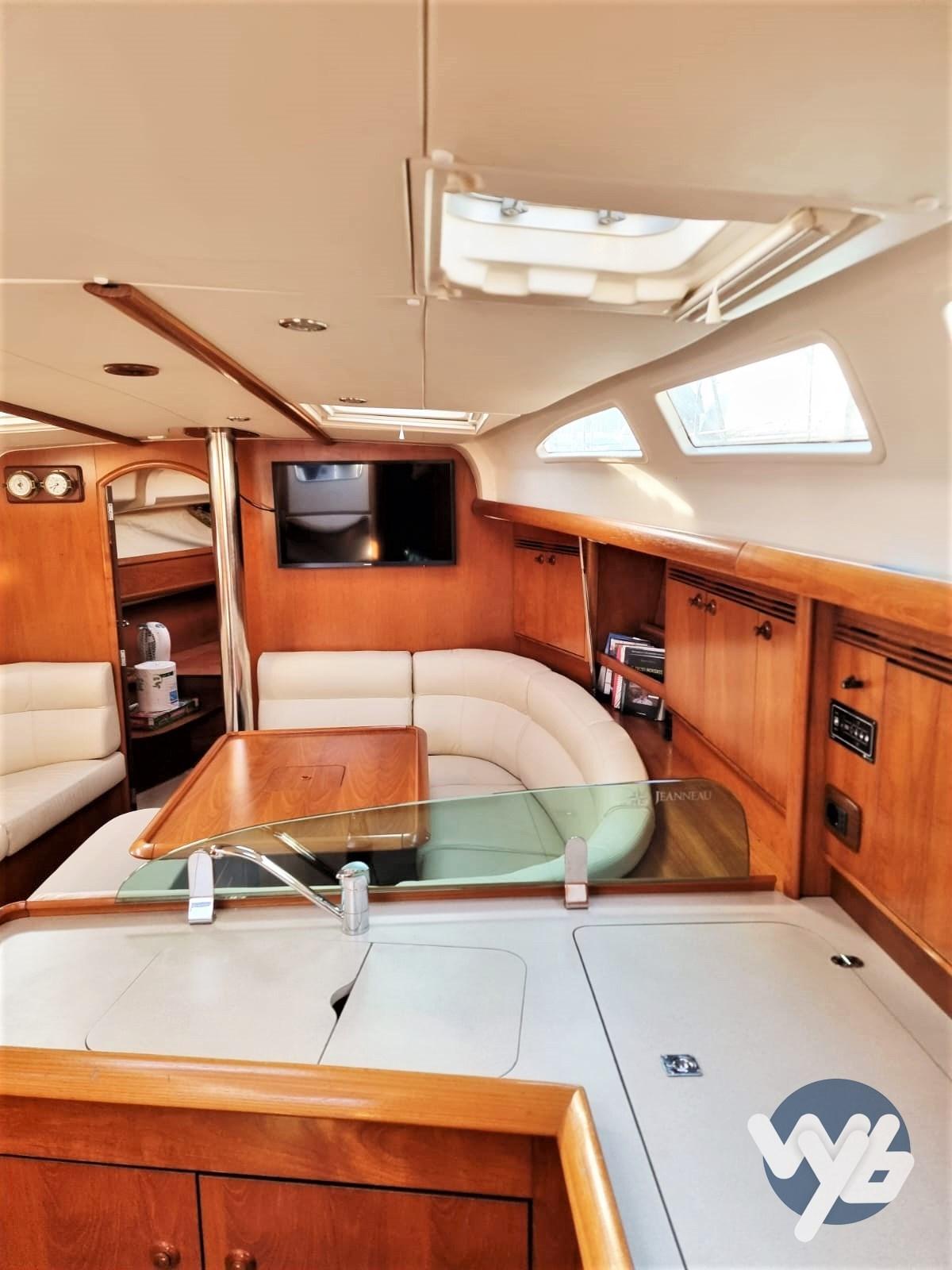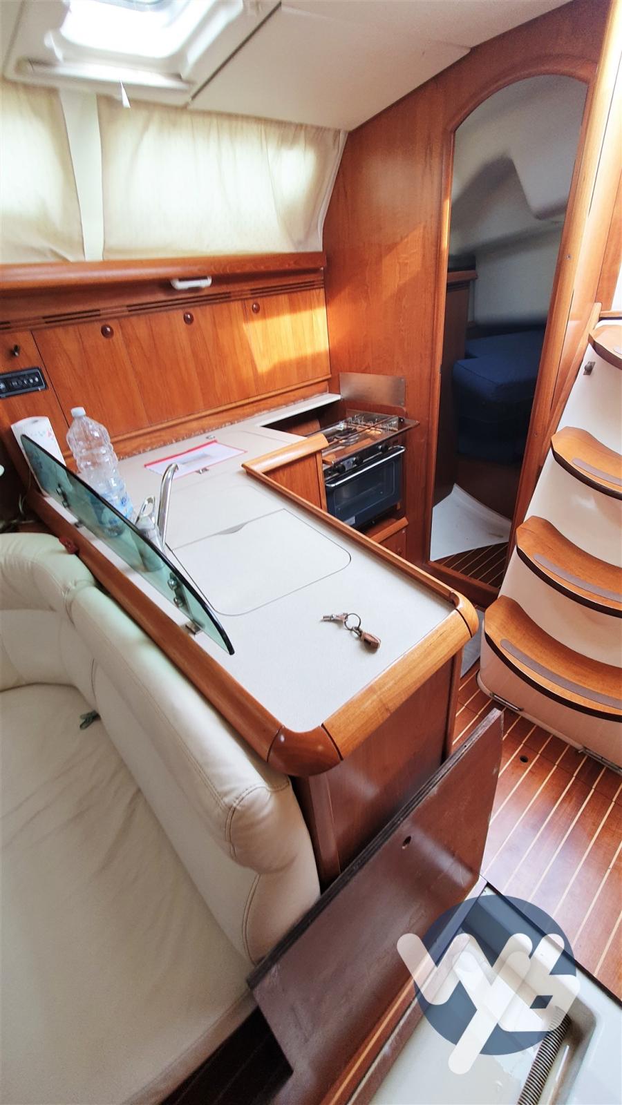 Alarme moteur, Alarme de pompe de cale, Eau sous pression, 3 Batteries, Passavant en teck, Couleur spéciale, Douche de cockpit, Passerelle, Pompe de cale manuelle, Porte latérale, Cockpit en teck, Prise de quai, Guindeau électrique, Echelle de bain, Chaise support HB, Annexe.