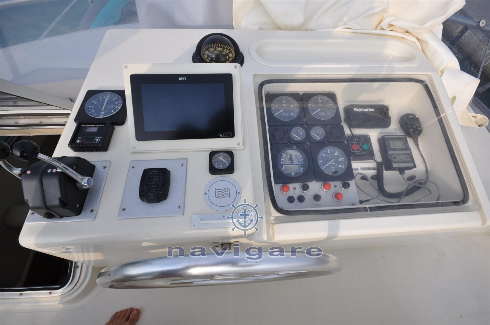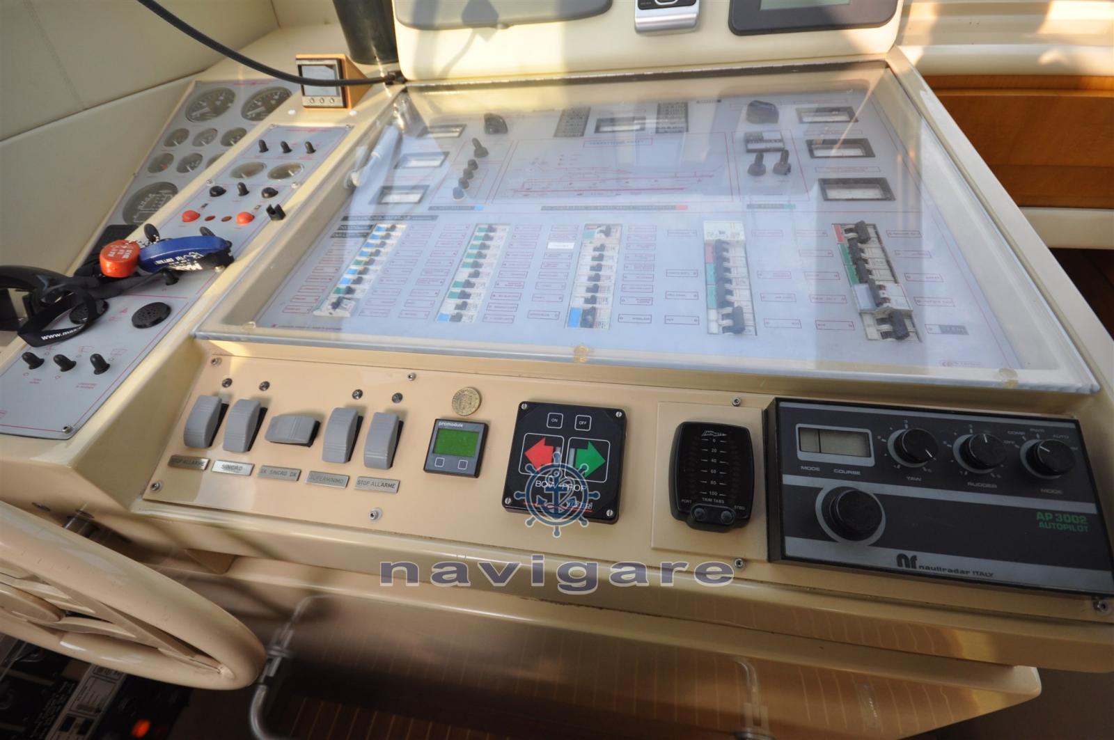 Alarme moteur, Alarme de pompe de cale, Eau sous pression, Douche de cockpit, Double barre à roue, Flaps hydrauliques (N°2), Lavage de chaine, Éclairage de courtoisie (LED 2025), Défenses, Passerelle, Plateforme arrière, Pompe de cale automatique, Cockpit en teck, Onduleur, Rollbar, Guindeau électrique, Echelle de bain, table de cockpit, Annexe (NUOVO), Winch électrique arrière.