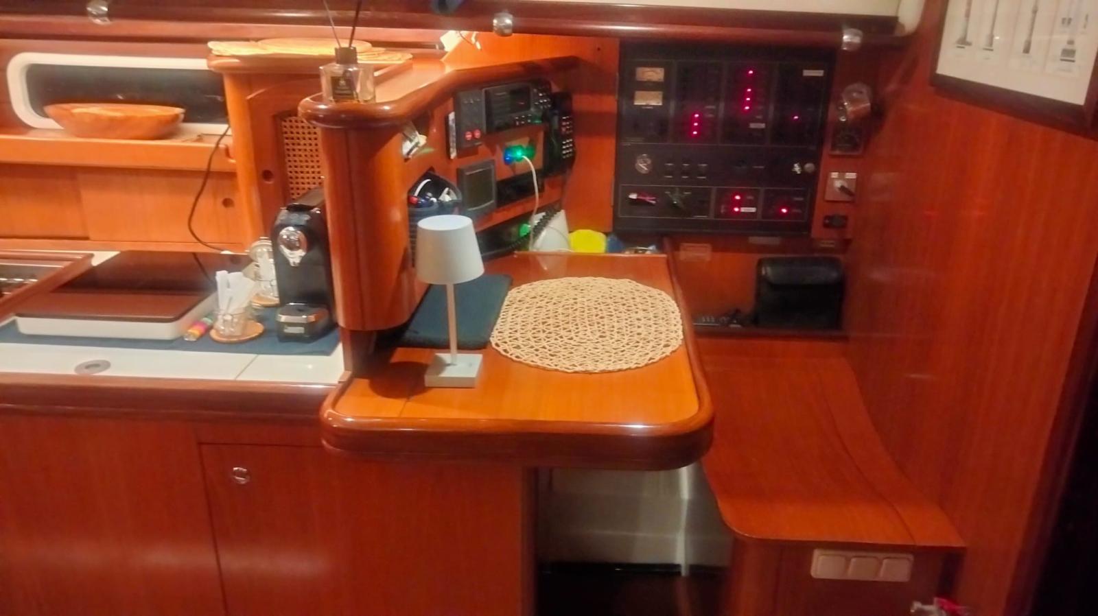 Alarme moteur, Ancre (con 70m di catena sostituita 2020), Eau sous pression, 7 Batteries (sostituite 2020), Passavant en teck (da rivedere), Couleur spéciale (scafo blu), Douche de cockpit, Double barre à roue, Propulseur d'étrave (Max Power), Éclairage de courtoisie, Pompe de cale manuelle, Porte latérale, Cockpit en teck (in buone condizioni), Prise de quai, Connexion eau sous pression à quai, Onduleur, Guindeau électrique, Gréement monotoron (sostituito nel 2010), Echelle de bain, Chaise support HB, table de cockpit, 2 Winch (da 44), 4 Winch électrique (2 da 66 e 2 da 44).