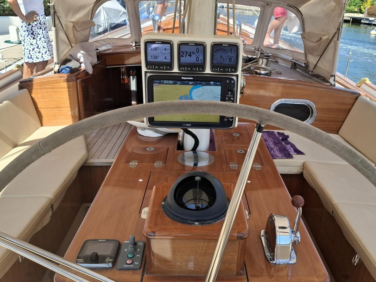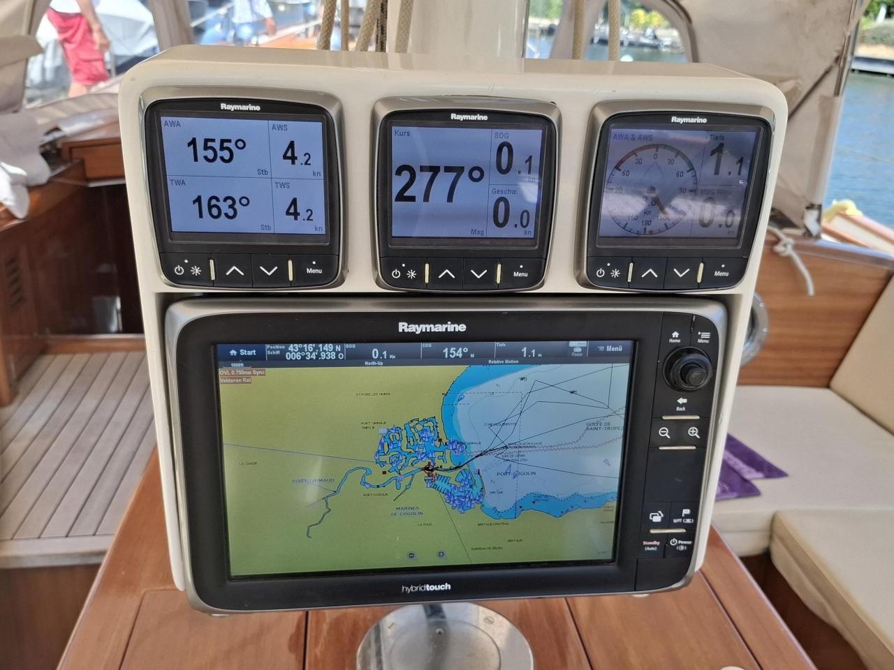 Radar HD couleur Raymarine GPS traceur E125 (cockpit) + afficheurs i70 intérieurs Raymarine Hybridtouch Pilote automatique Raymarine SPX30 AIS 650 Raymarine VHF fixe Raymarine VHF portable Raymarine Balise de détresse Antenne TV satellite KVH M2