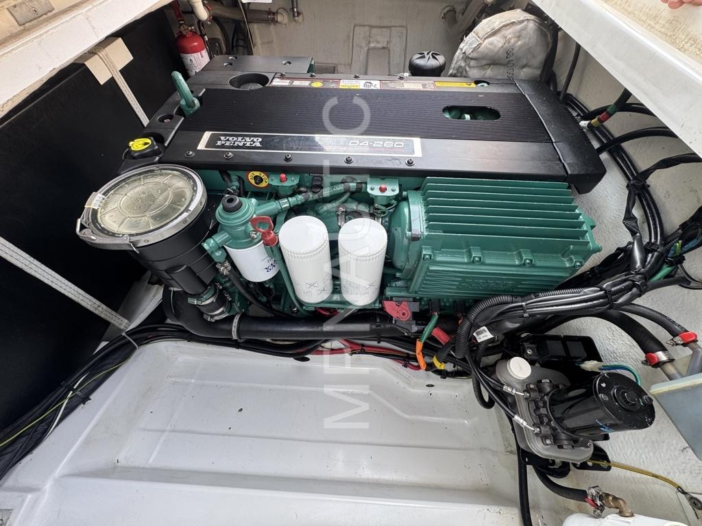 Propulsé par un Volvo Penta D4-260 de 260 CV, ce NC 9 atteint 25 nœuds avec une maniabilité exceptionnelle ? Les hélices Duoprop inox 2023 et les flaps Lenco garantissent une navigation stable et réactive même à grande vitesse