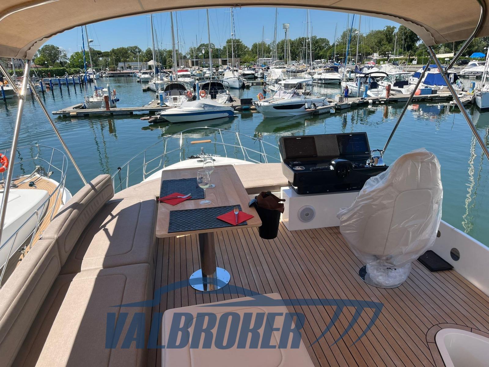 Eau sous pression, Batteries (AGM), Chargeur de batterie (quick), Douche de cockpit, Propulseur d'étrave (6 pale), 2 Flaps électriques (Bennett), Extincteur(s) fixe(s), Éclairage de courtoisie, 2 Spots sous-marins (AQUALUMA A LED), Passerelle (idraulica, teak), Plateforme arrière (teak), Cockpit en teck (2024), Echelle de bain, Winch électrique arrière.