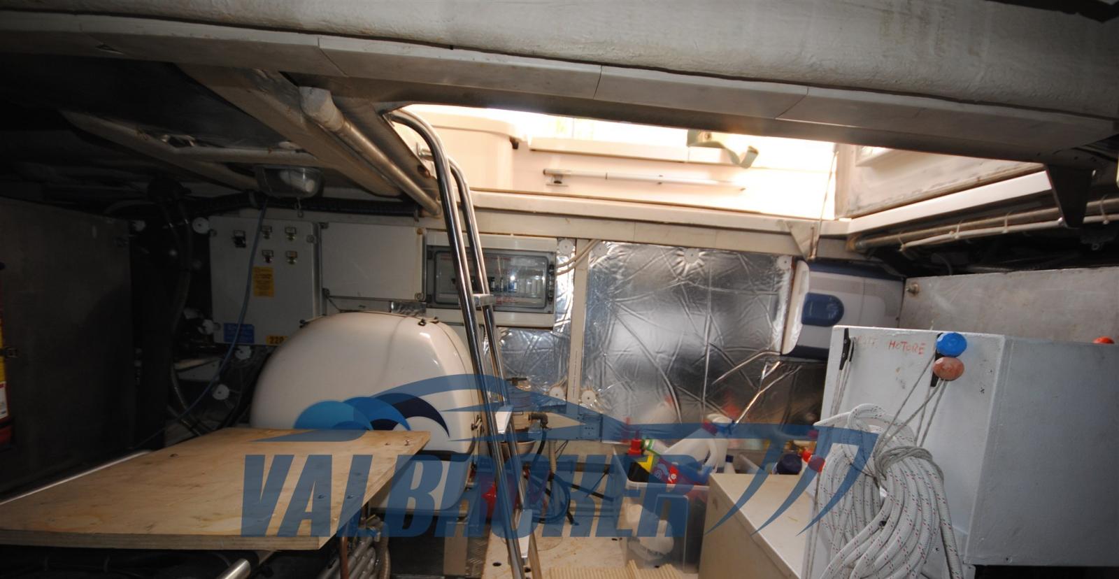 Rénovation complète réalisée par une entreprise spécialisée : onduleurs neufs, nouveau groupe électrogène, sellerie, robinets. Fly réaménagé en 2024 : ajout de teck, nouvelle console carbone, moniteurs Raymarine, sellerie extérieure, fabrication de canapés.