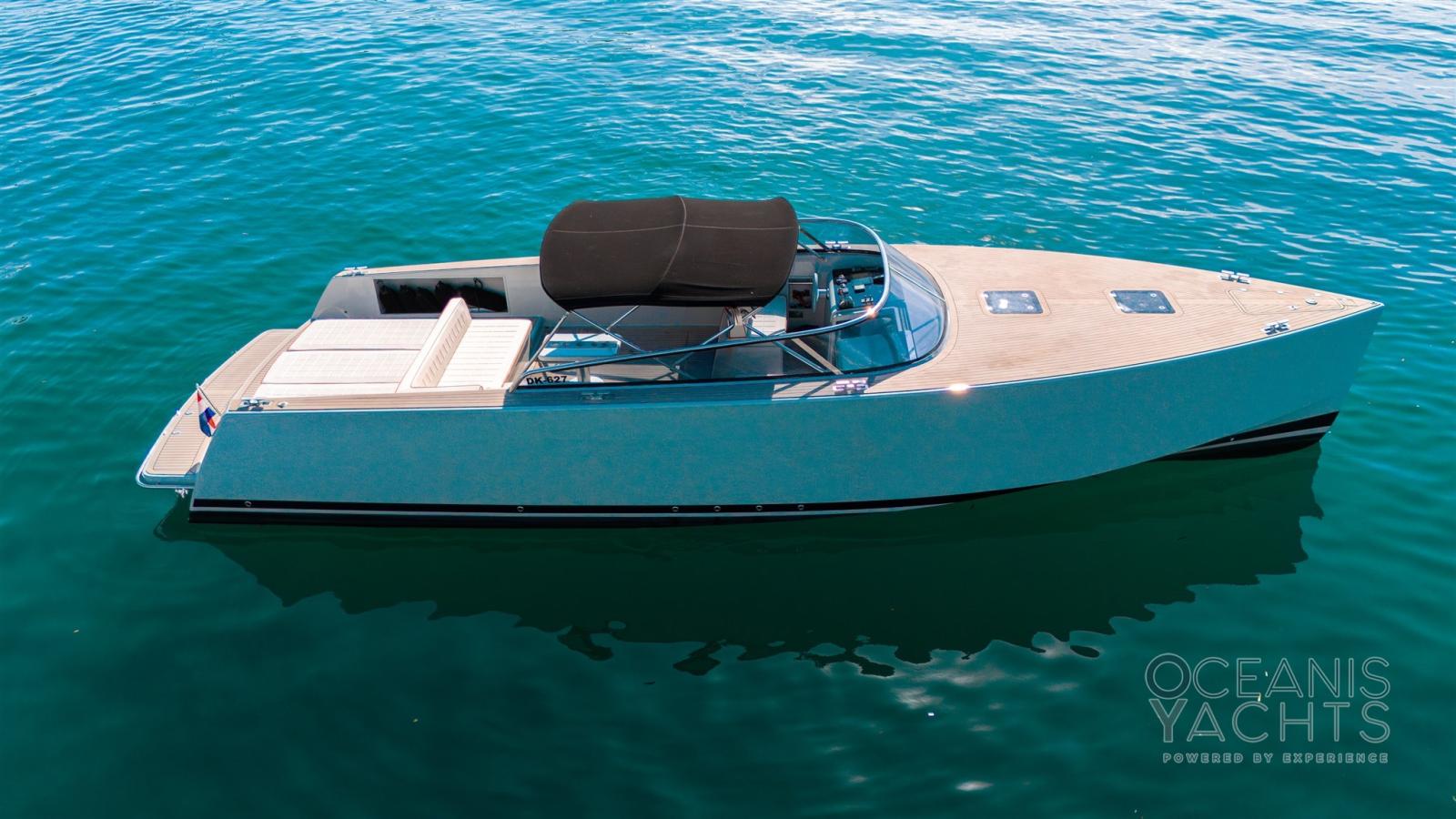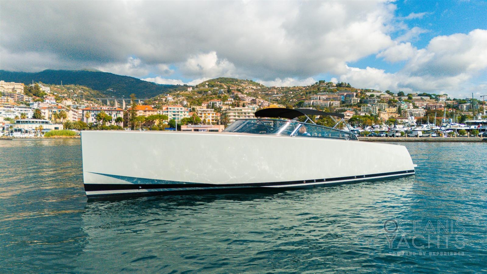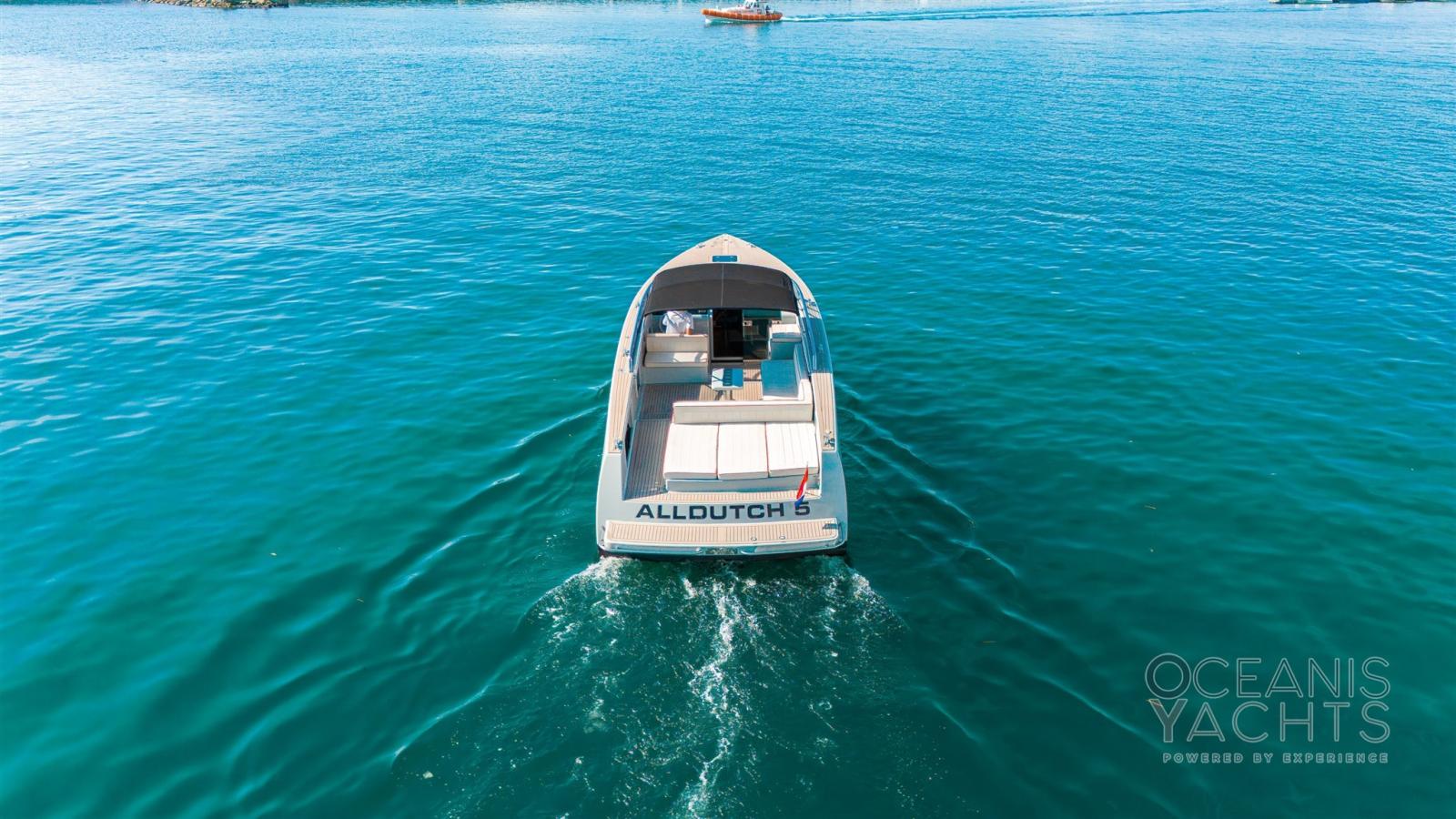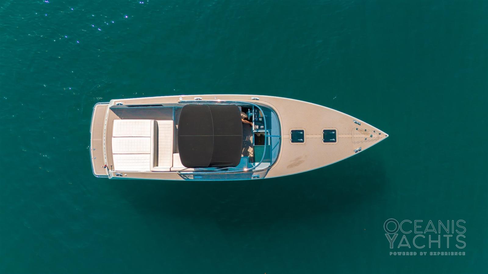 Trim hydraulique, Douche de cockpit, Flaps fixes, Spots sous-marins, Plateforme arrière, Prise de quai, Connexion eau sous pression à quai.