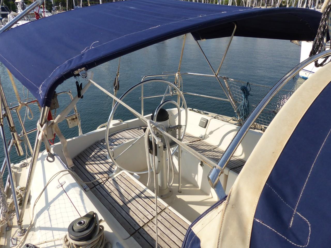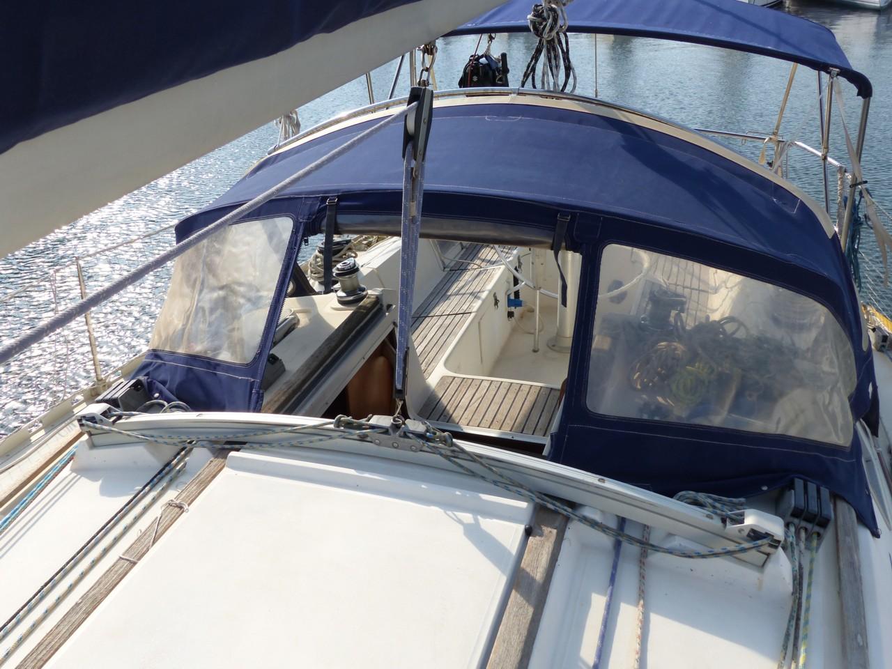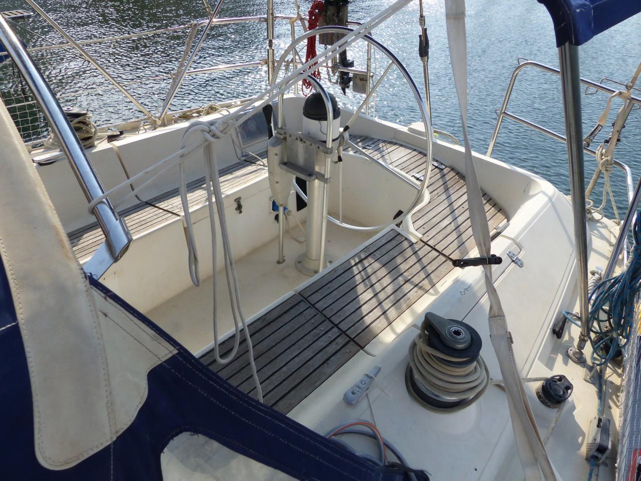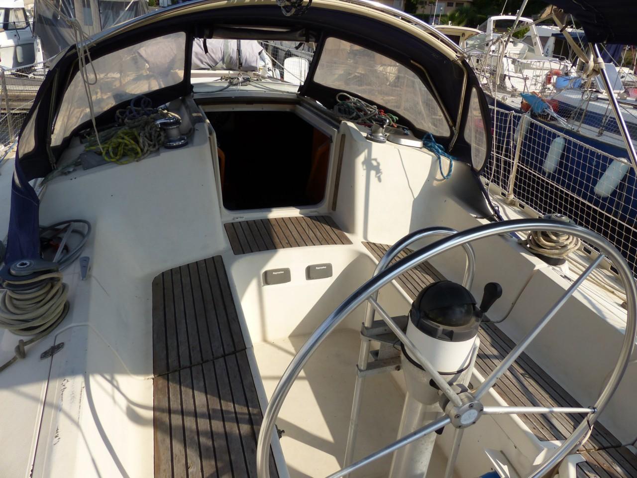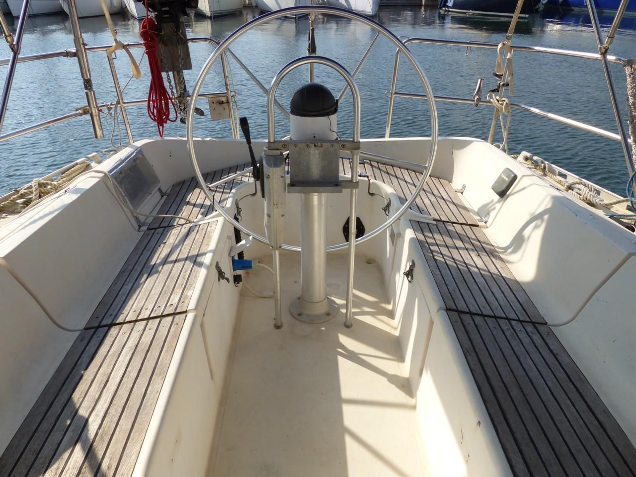 surfaces constructeur : grand voile 25,75 m² - génois 44,15 m² - mat 2 barres de flèchesSpi symétrique avec chaussette - tangon – cockpit teck- passerelle
