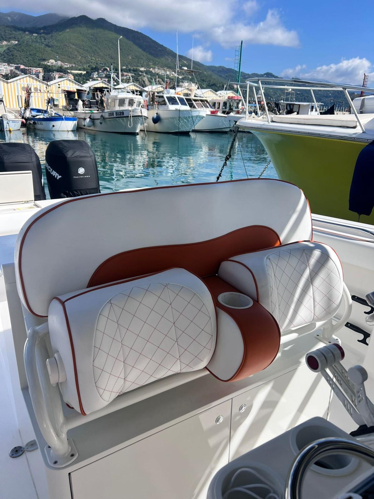 Alarme moteur, Eau sous pression, Couleur spéciale, Douche de cockpit, Prise de quai, Guindeau électrique, Echelle de bain, T-Top.