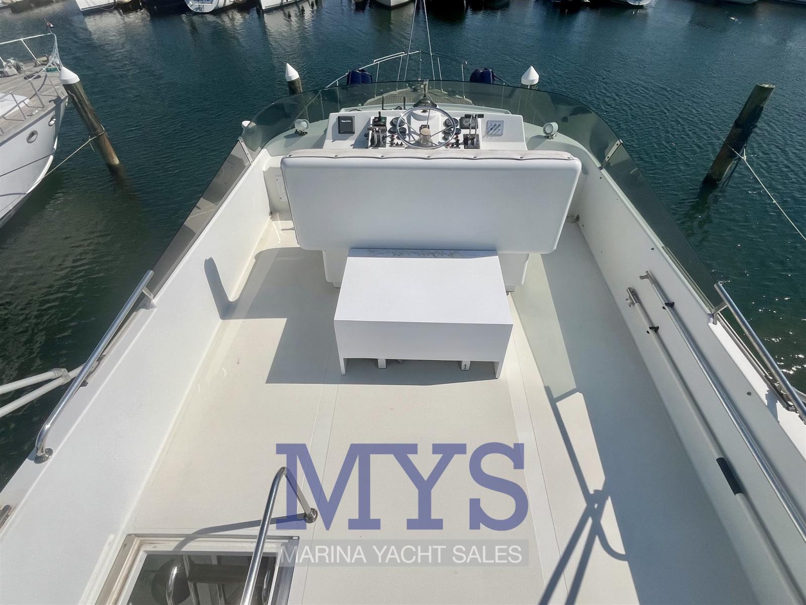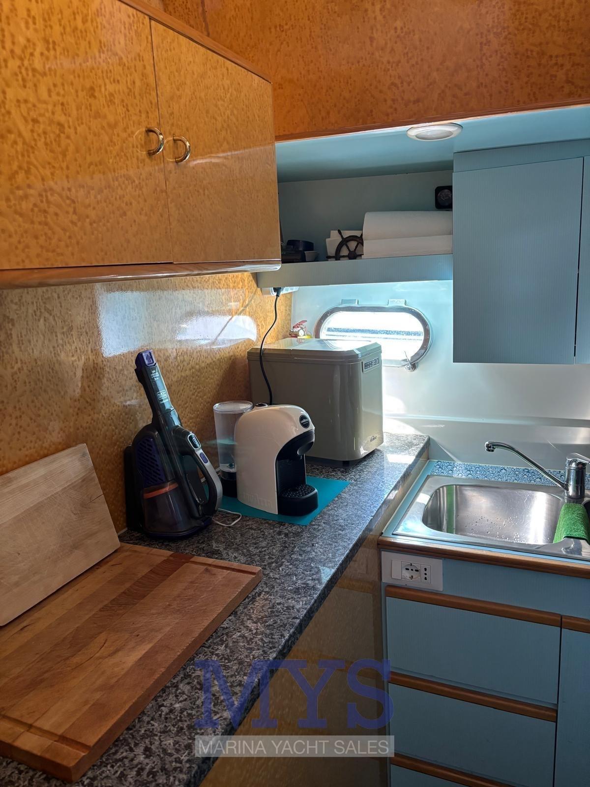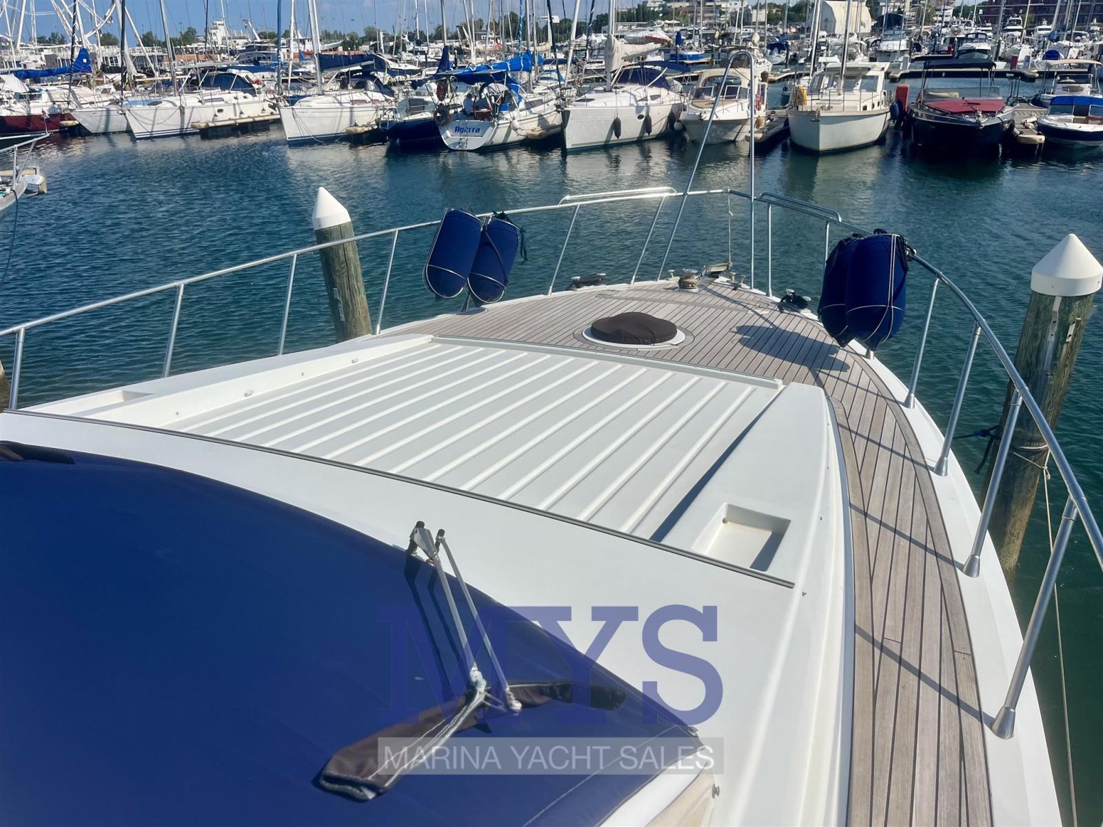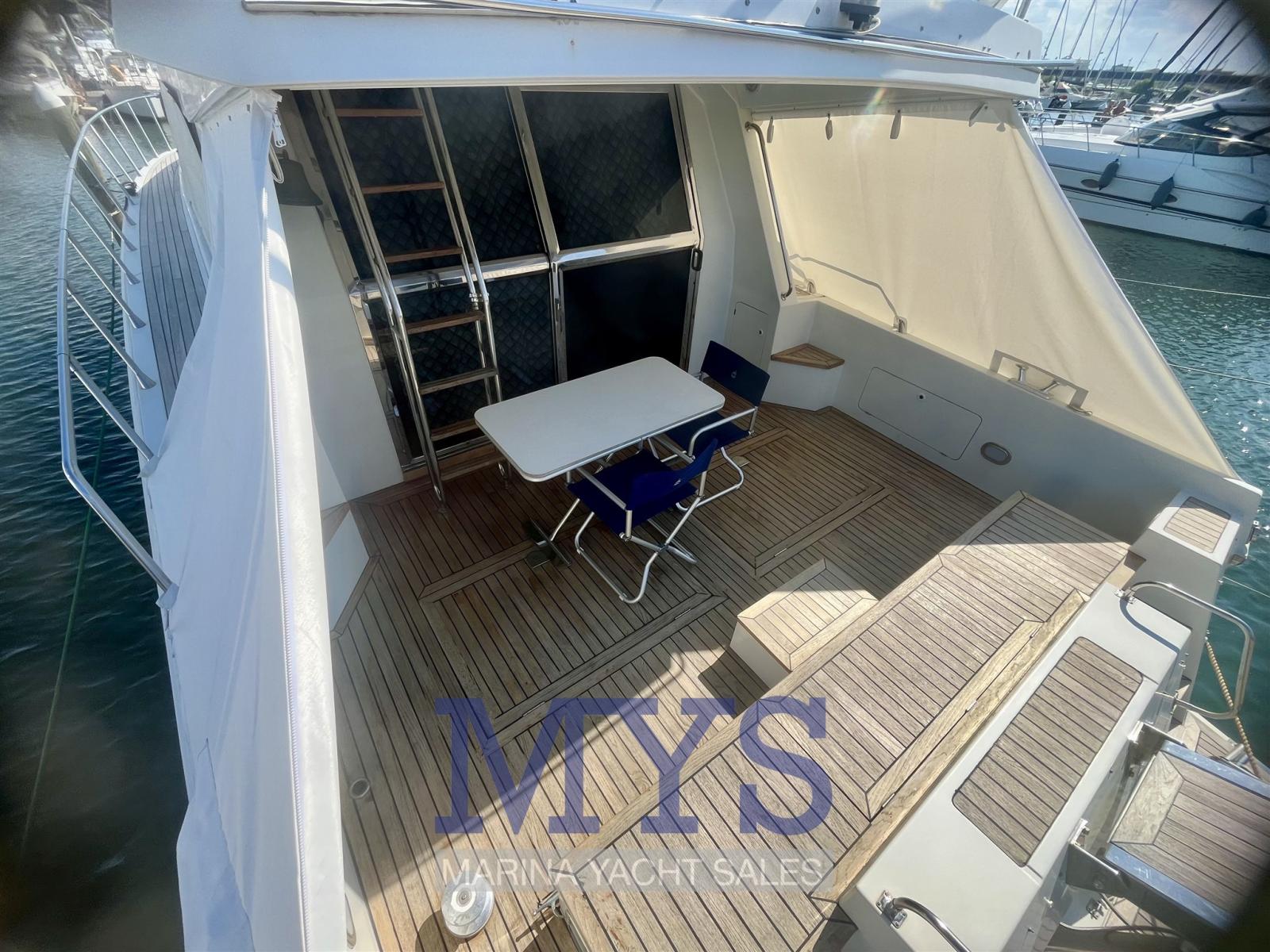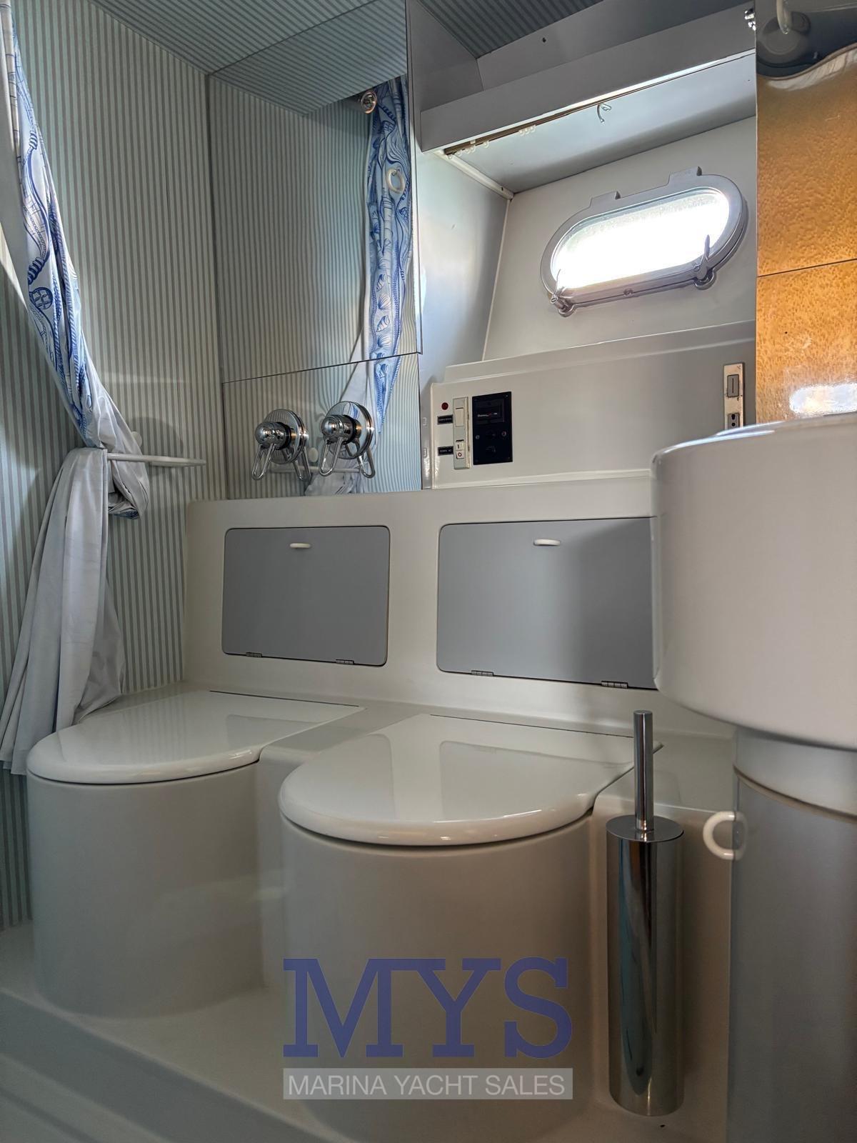 Eau sous pression, Douche de cockpit, Double barre à roue (Interna - Fly), Flaps hydrauliques, Indicateurs de flaps, Éclairage de courtoisie, Défenses, Passerelle (Idraulica), Plateforme arrière, Pompe de cale manuelle, Pont en teck, Cockpit en teck, Prise de quai, Connexion eau sous pression à quai, Guindeau électrique, Echelle de bain, 2 Winch électrique arrière.