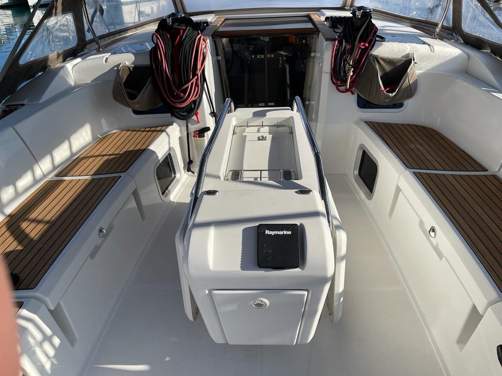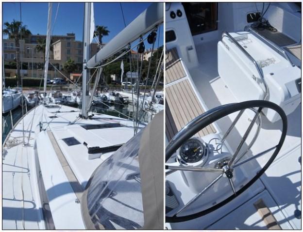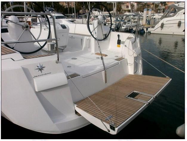 Alarme moteur, Eau sous pression, 4 Batteries, Douche de cockpit, Double barre à roue, Plateforme arrière, Pompe de cale manuelle, Guindeau électrique, Echelle de bain, table de cockpit.