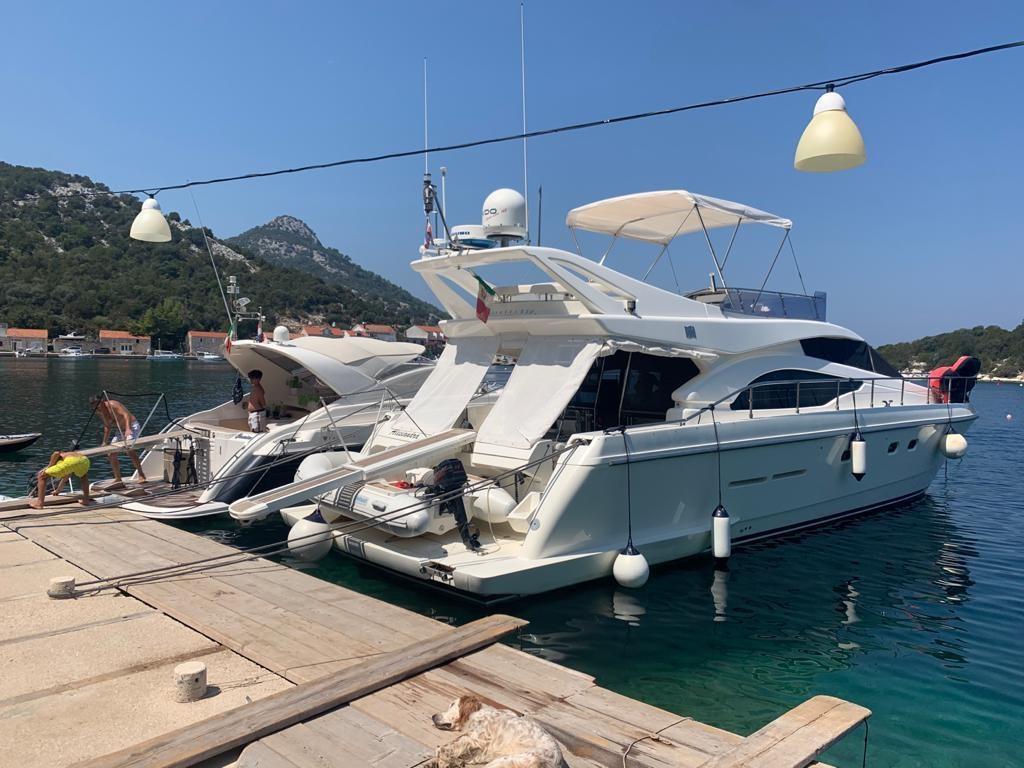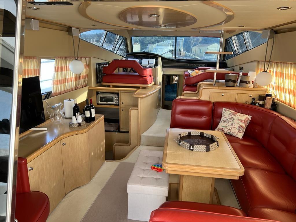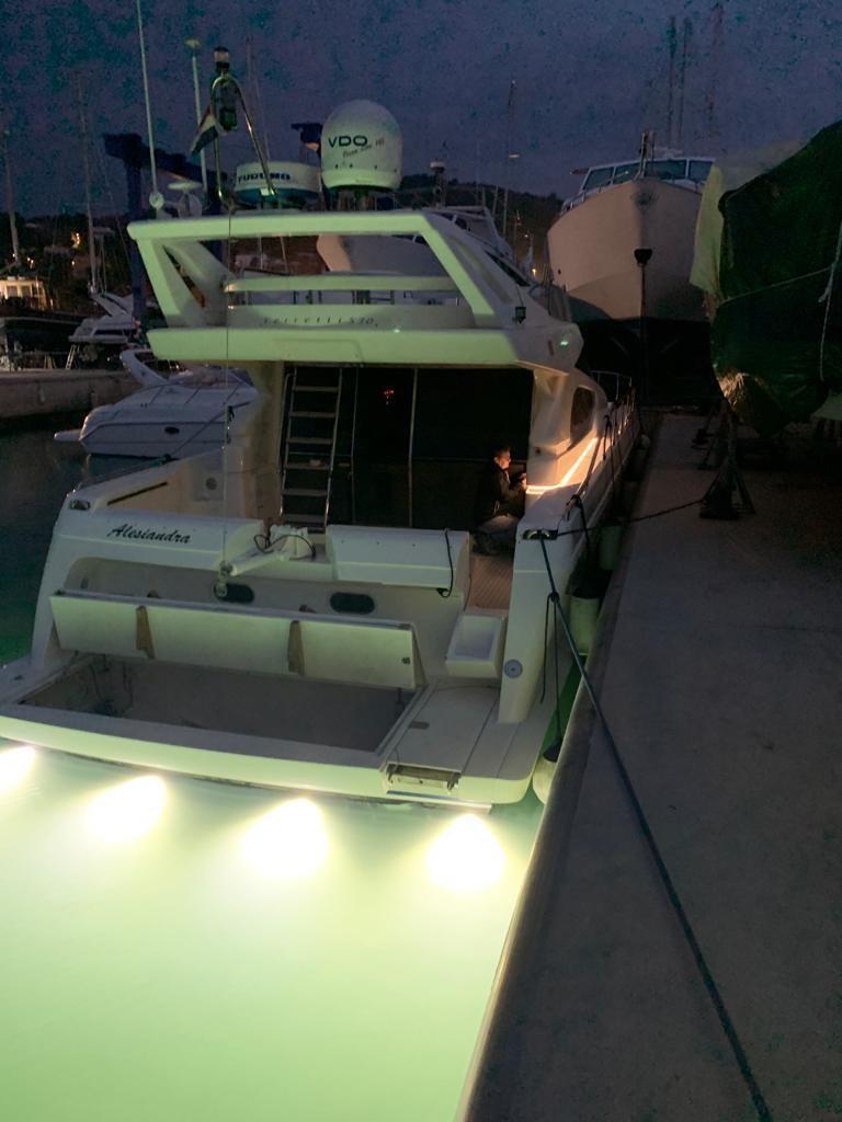 Bateau entièrement en option ; intérieurs en chêne, moteurs débarqués vérifiés salle des machines refaite, révision de toutes les pompes, révision de la passerelle Besenzoni, isolation de la salle des machines refaite, remplacement de toutes les bagues, cabine double équipage, double toit bimini sur le flybridge, nr. 8 lumières LED sous-marines, bateau prêt à bouer. En 2025, des travaux seront réalisés pour 100000 €.