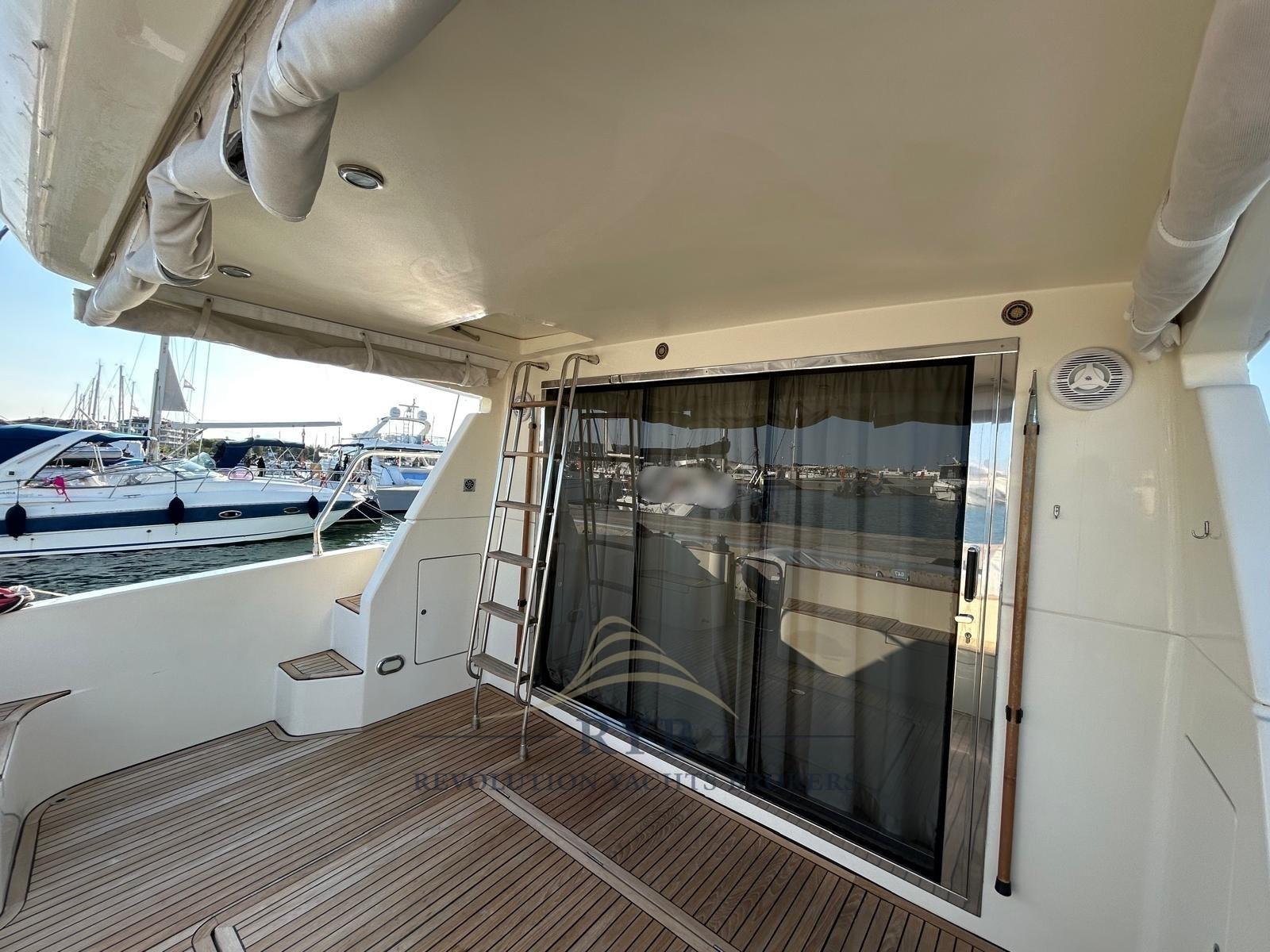 Eau sous pression, Passavant en teck, Douche de cockpit, Double barre à roue, Propulseur d'étrave (SLEIPNER 2025), Phare de poursuite, Flaps hydrauliques, Extincteur(s) fixe(s), Indicateurs de flaps, Éclairage de courtoisie, Passerelle (IDRAULICA - BESENZONI), Plateforme arrière (TEAK), Pompe de cale automatique, Pompe de cale manuelle, Porte latérale, Cockpit en teck (2023), Prise de quai, Onduleur, Répétiteur électronique (FLY), Rollbar, Guindeau électrique, Echelle de bain, Table pliante de salon, Annexe, Corne, Winch électrique arrière.