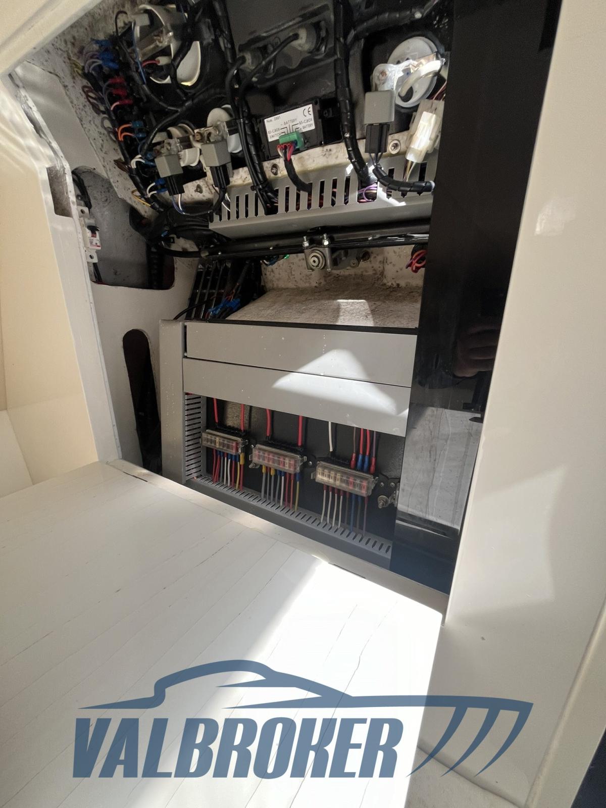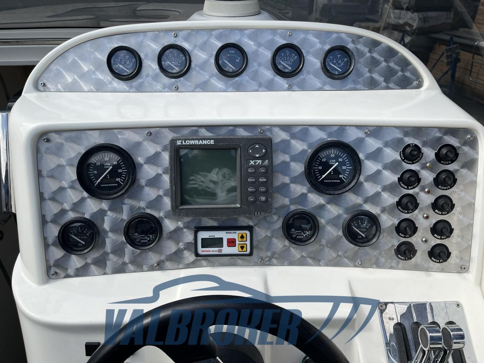 Offshore élégant avec une grande habitabilité. Propulsé par un moteur à essence Volvo Penta 8.0 2x375 avec seulement 300 heures de fonctionnement. Stocké dans un hangar intérieur, utilisé uniquement sur le lac.