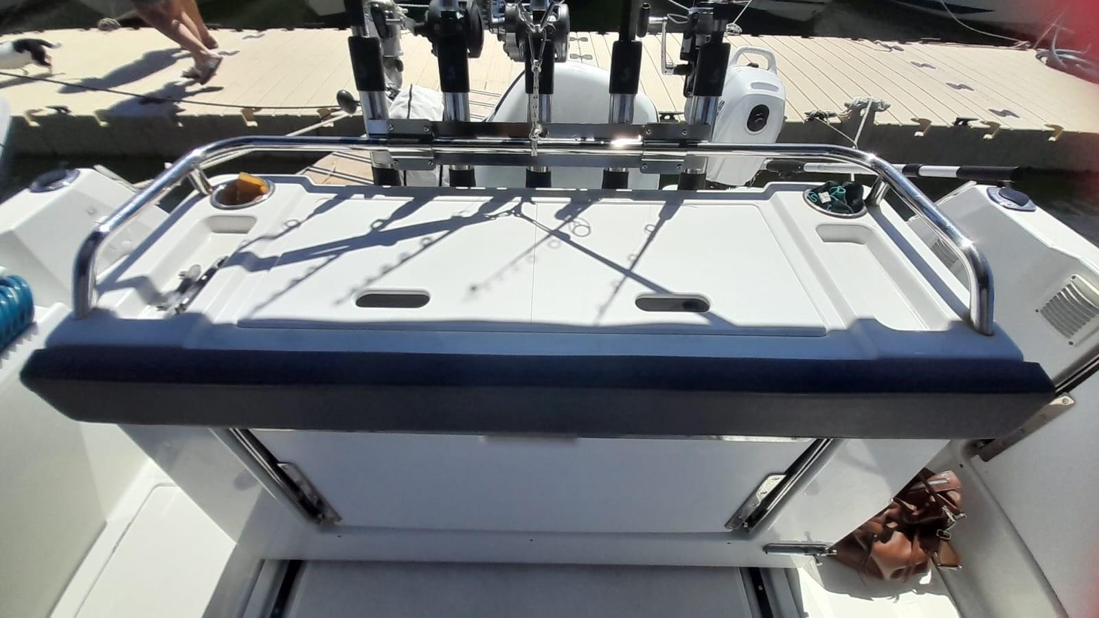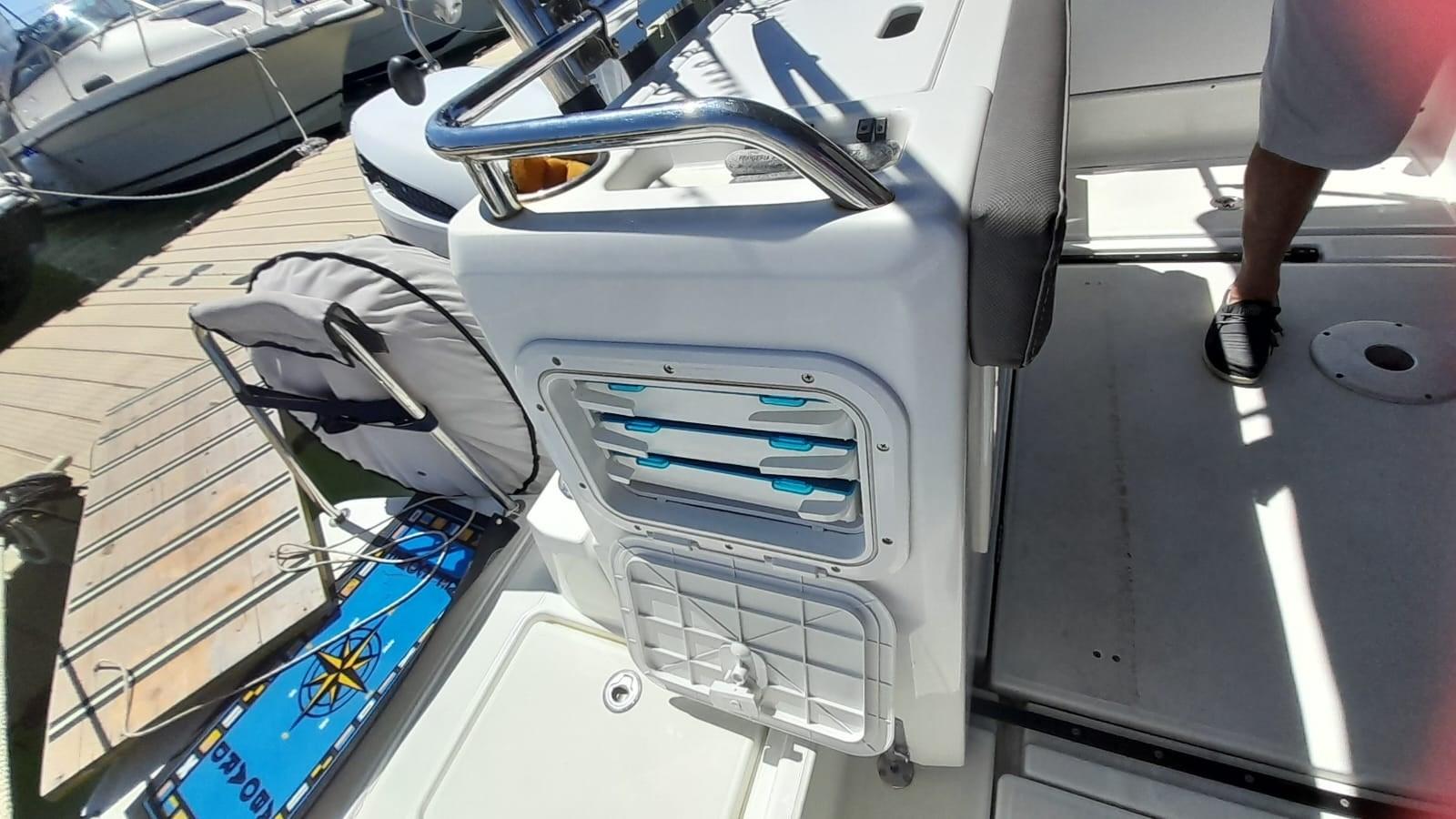 Alarme moteur, Eau sous pression, Douche de cockpit, Panneau solaire, Pompe de cale manuelle, Prise de quai, table de cockpit.