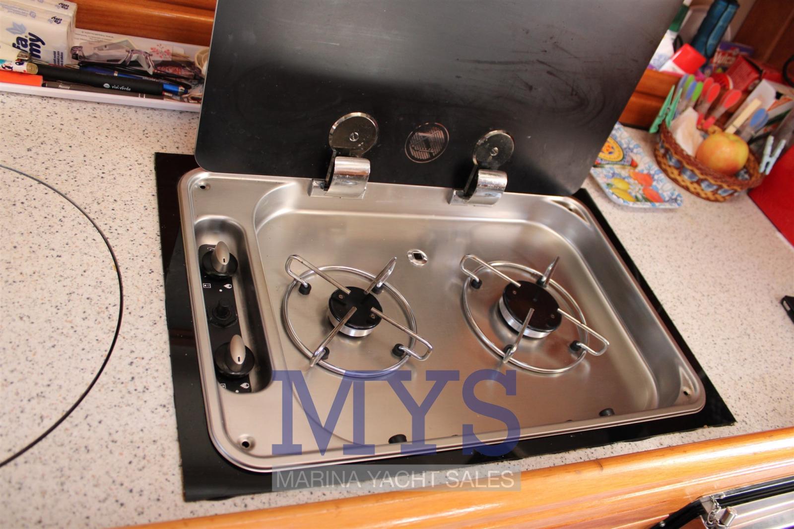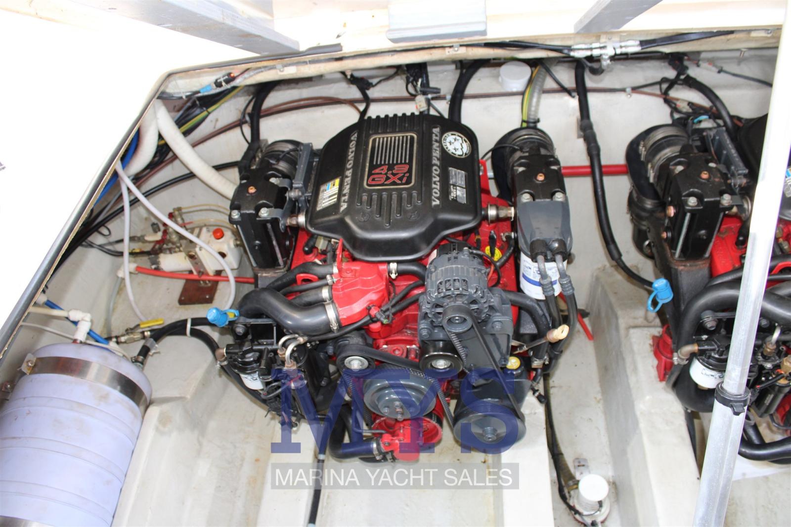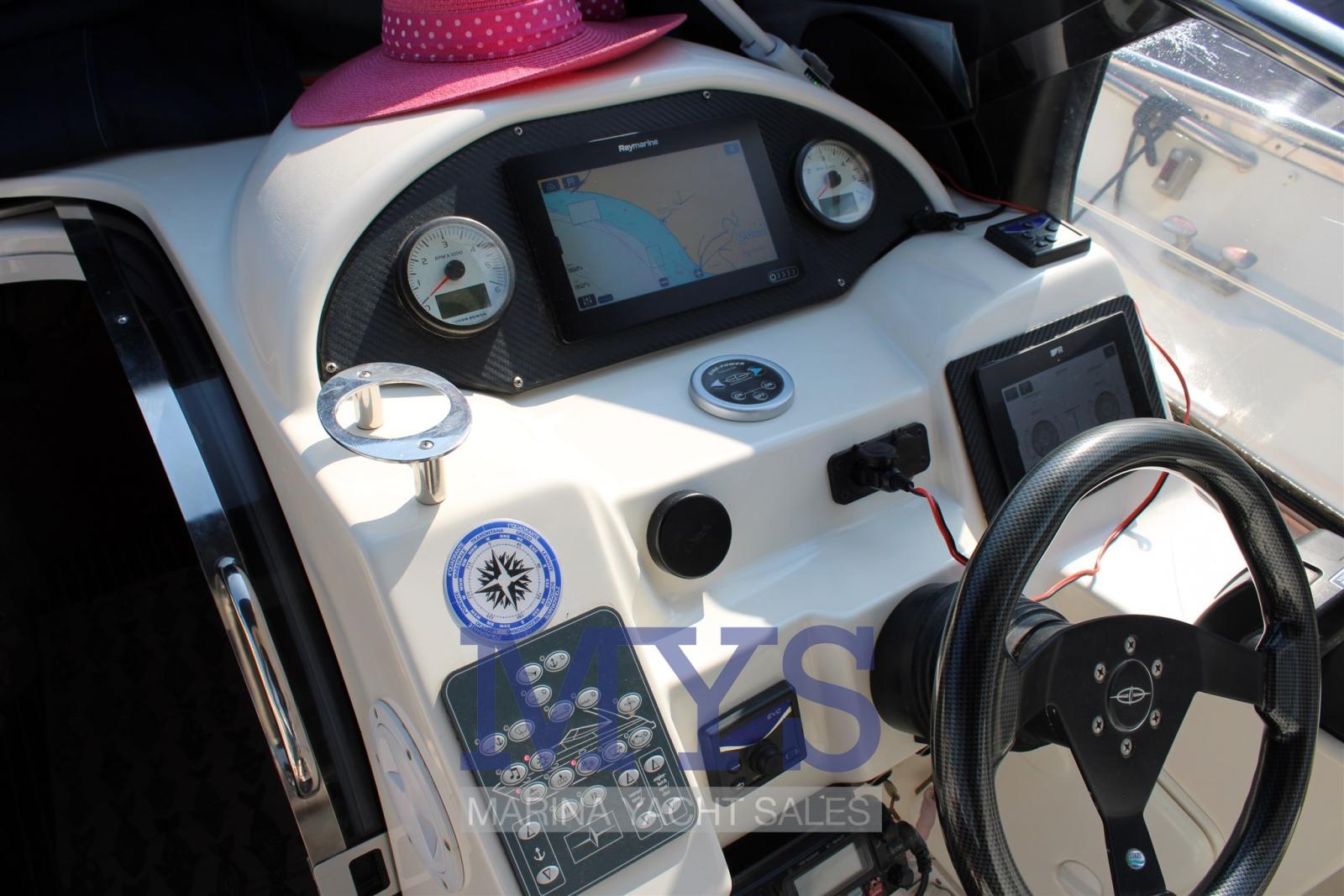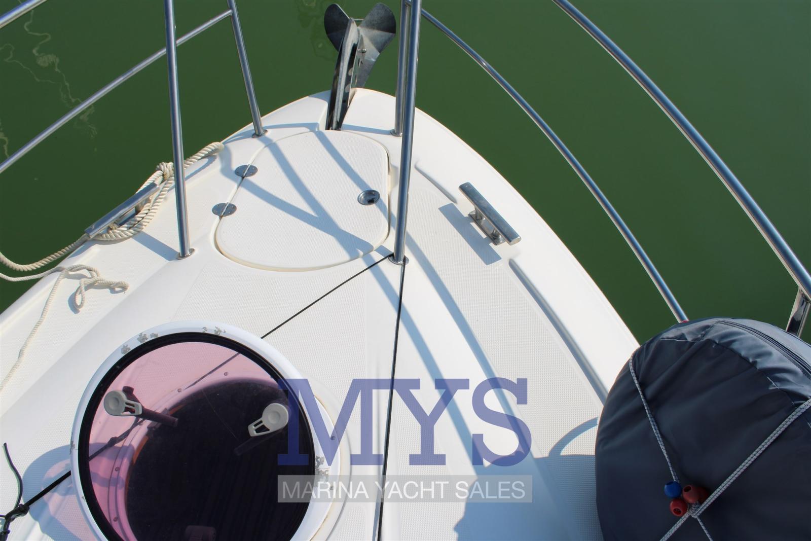 Alarme moteur, Alarme de pompe de cale, Ouverture du compartiment moteur électrique, Eau sous pression, Câble d’alimentation à quai, Couleur spéciale (Scafo con fascia blù), Douche de cockpit, Flaps hydrauliques, Indicateurs de flaps, Lavabo dans le cockpit, Éclairage de courtoisie, Moniteur de batterie, Plateforme arrière (in teak), Pompe de cale automatique, Prise de quai, Rollbar, Guindeau électrique, Echelle de bain, table de cockpit, Table pliante de salon, Corne.
